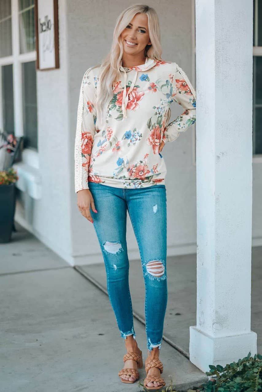 - This floral print hoodie is very casual and fashionable for your daily wear