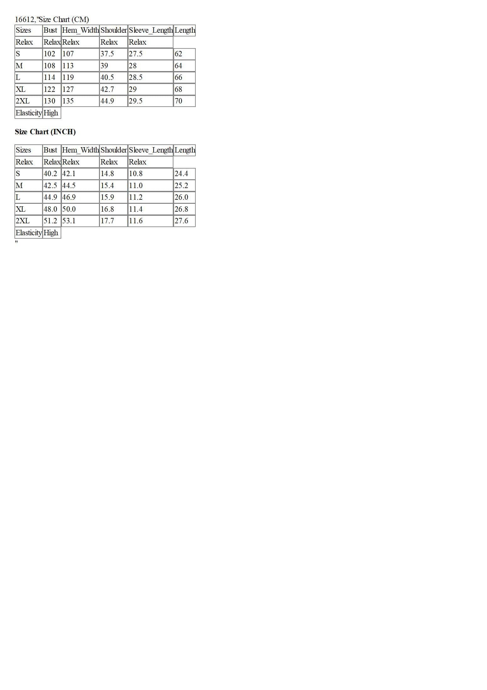 Size Chart (CM)