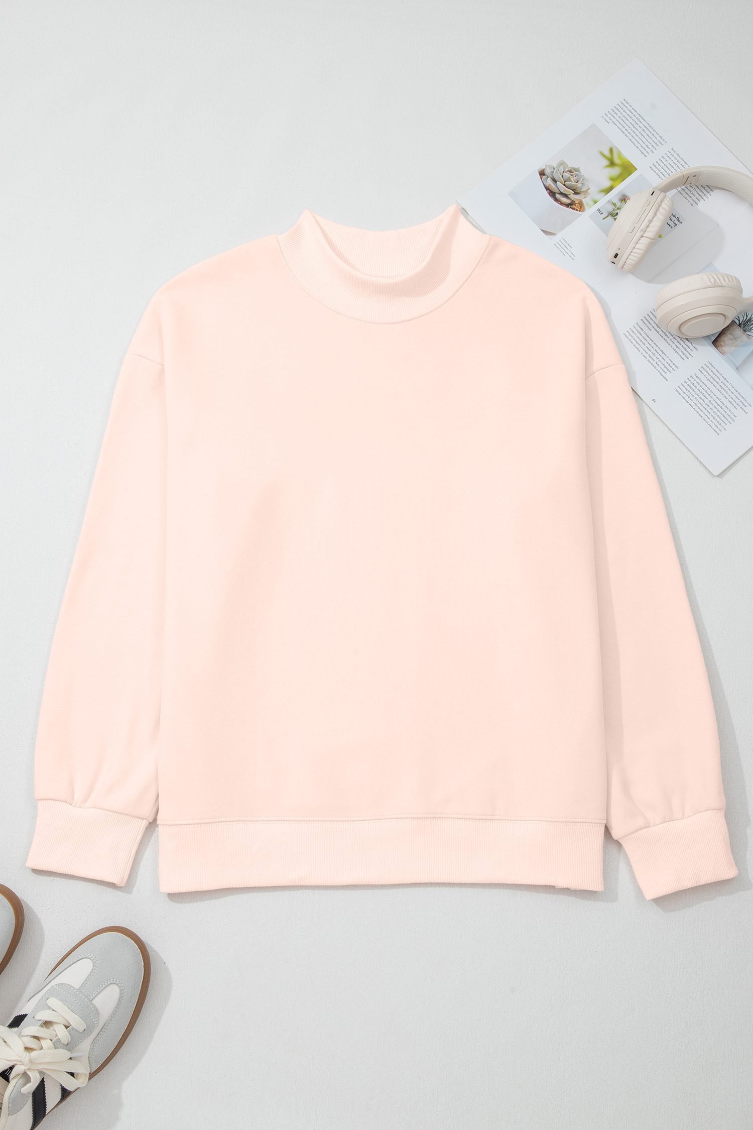 This baggy sweatshirt is cute with a light pink tone.