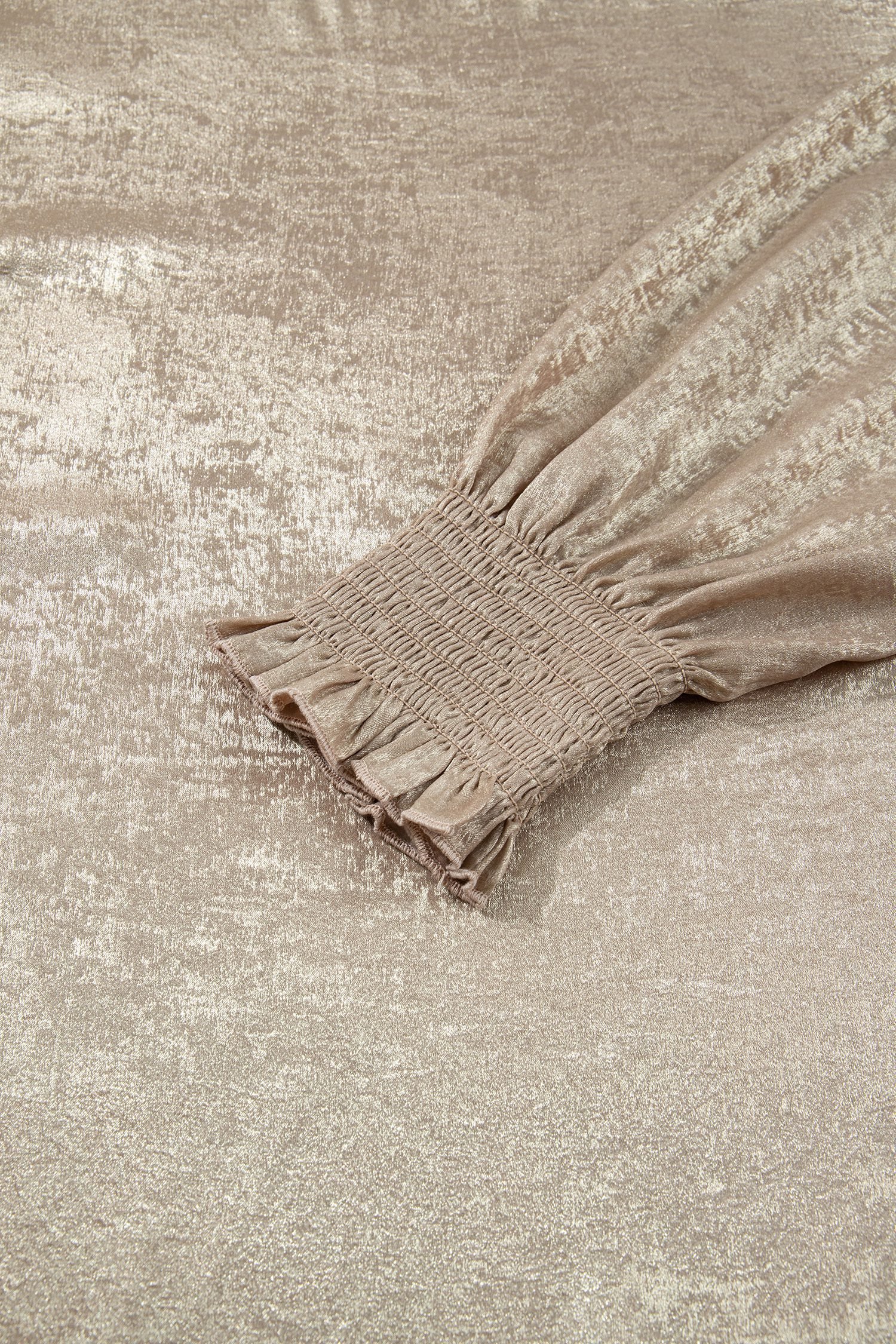 Lightweight shimmer fabric offers comfort with eye-catching sparkle.