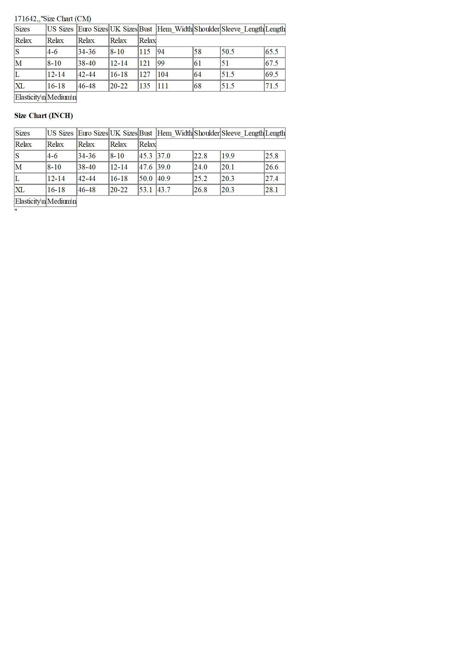 Sizes | US Sizes | Euro Sizes | UK Sizes | Bust | Hem_Width | Shoulder | Sleeve_Length | Length |