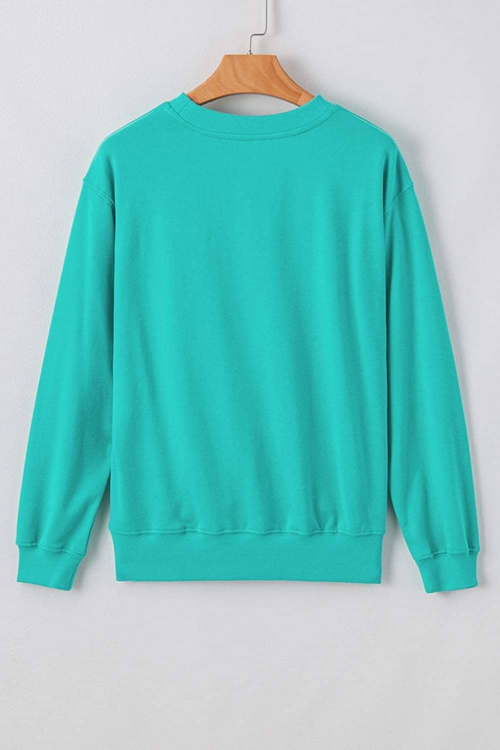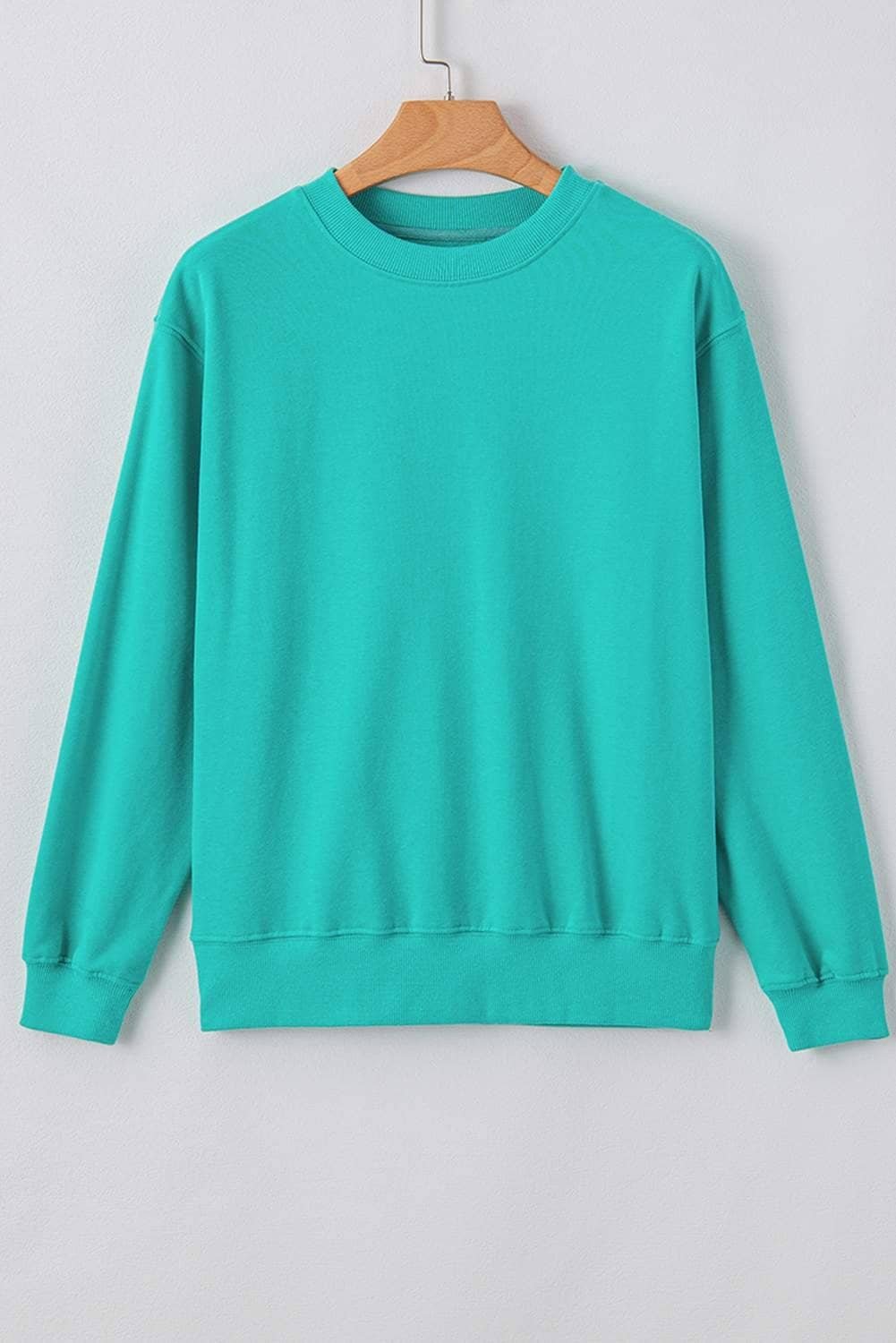 Aruba Blue Plain Drop Shoulder Crewneck Pullover Sweatshirt