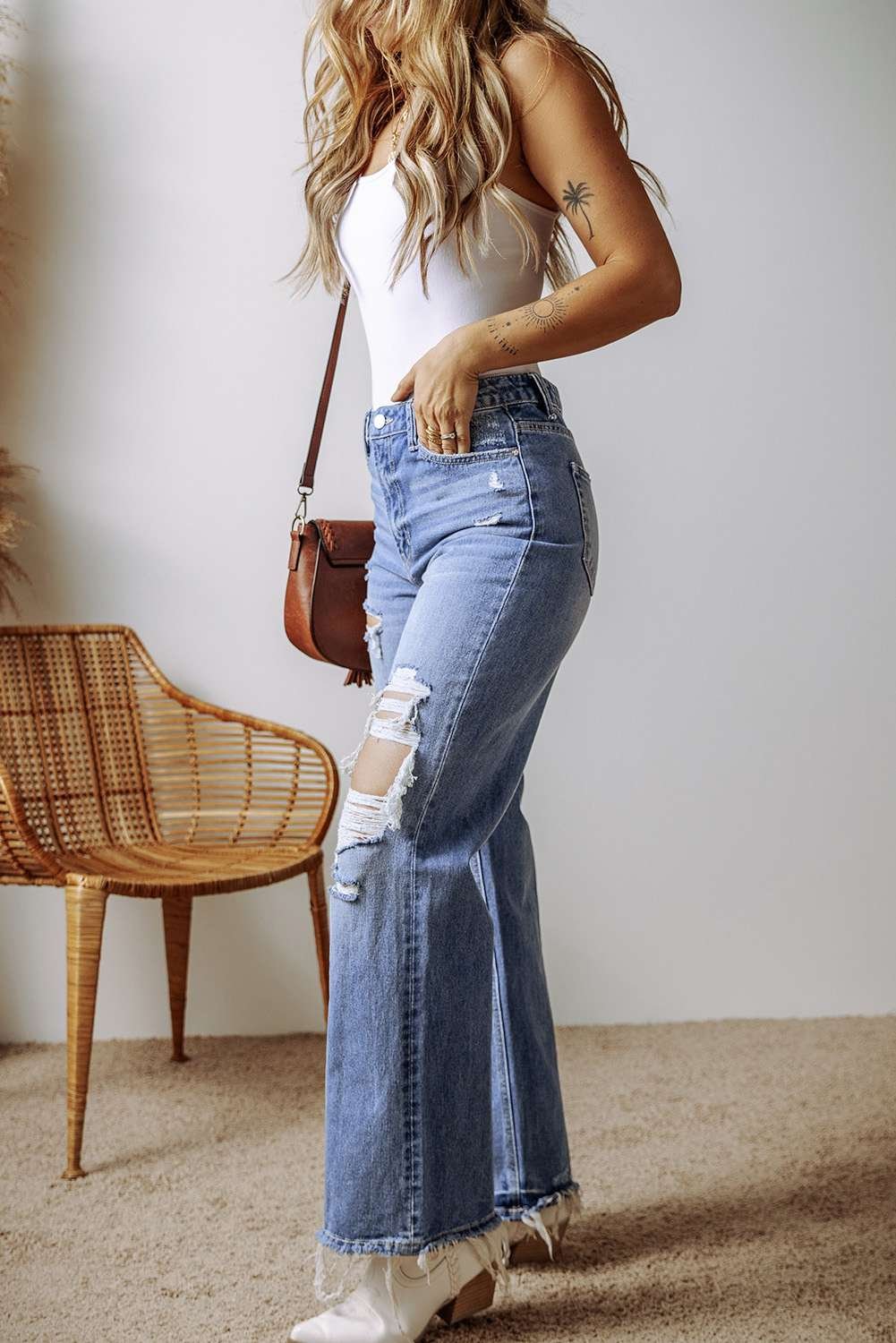 - This pair of distressed jeans is perfect for fashion ladies.