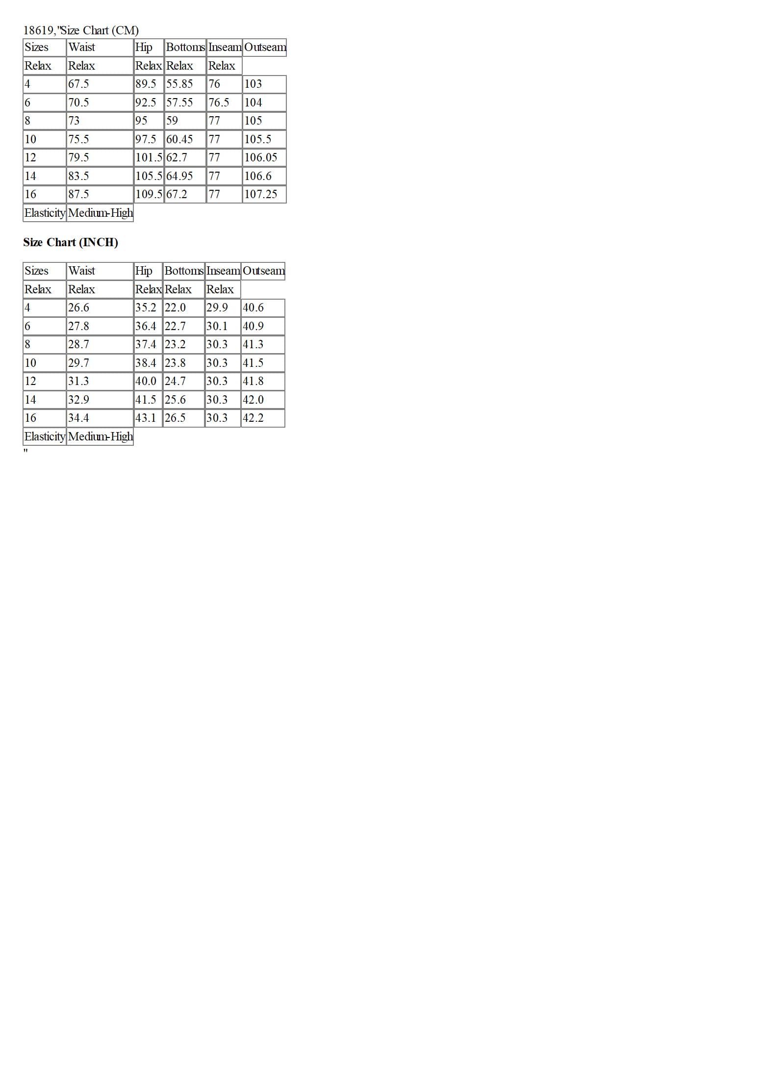 Size Chart (CM)