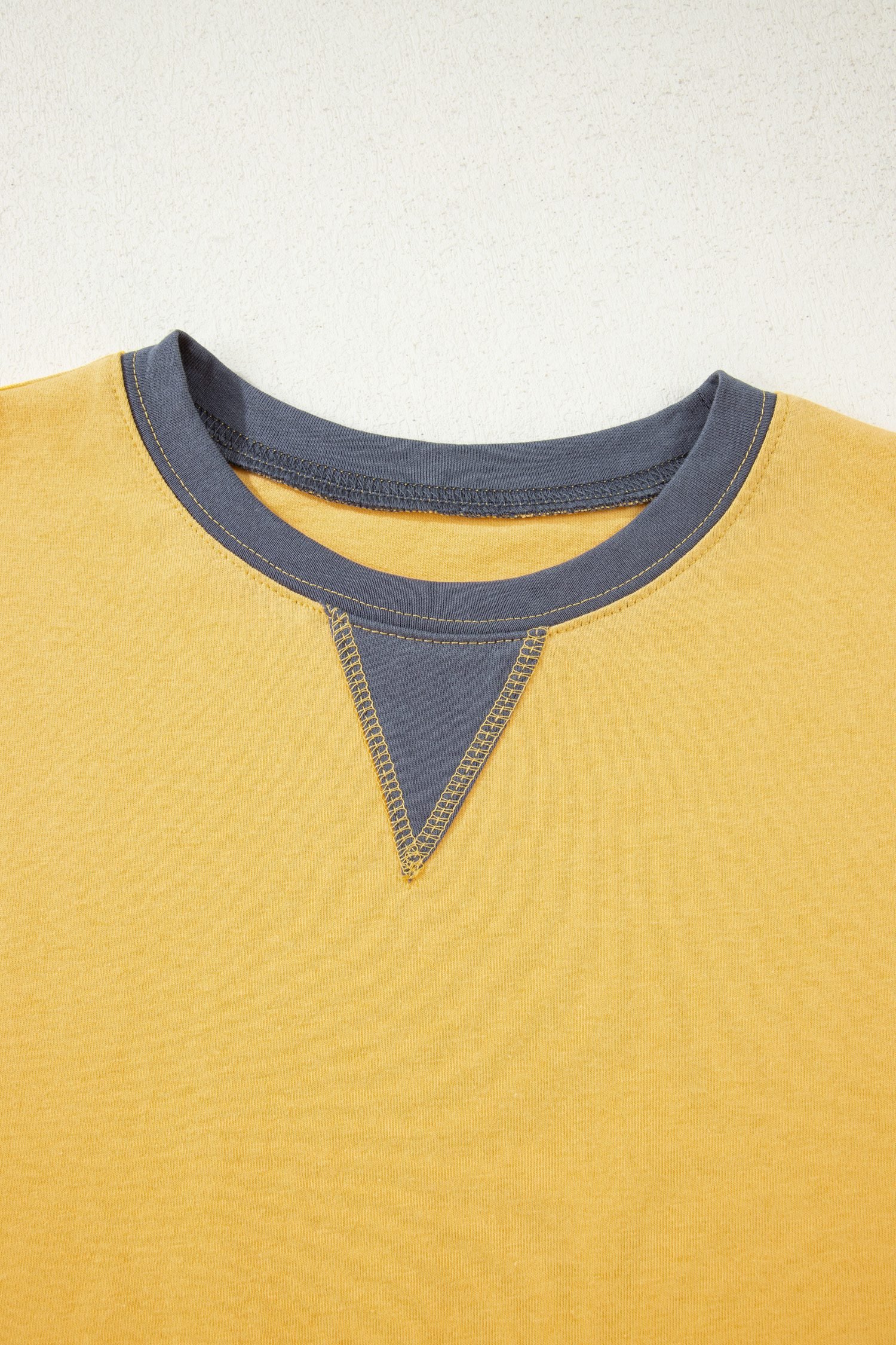 Be the first to review “Banana Cream Contrast Trim Raw Hemline Short Sleeve Loose Top”