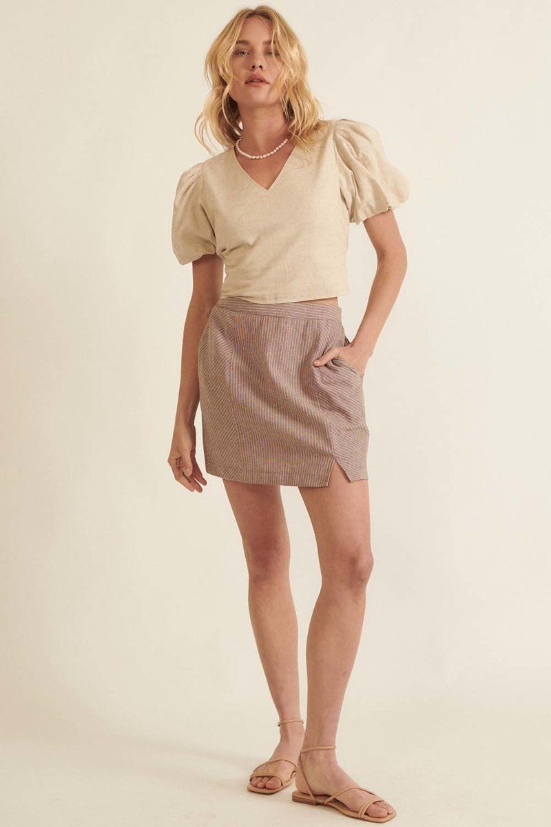 Banded Front Waist Pinstripe Mini Skirt -56190