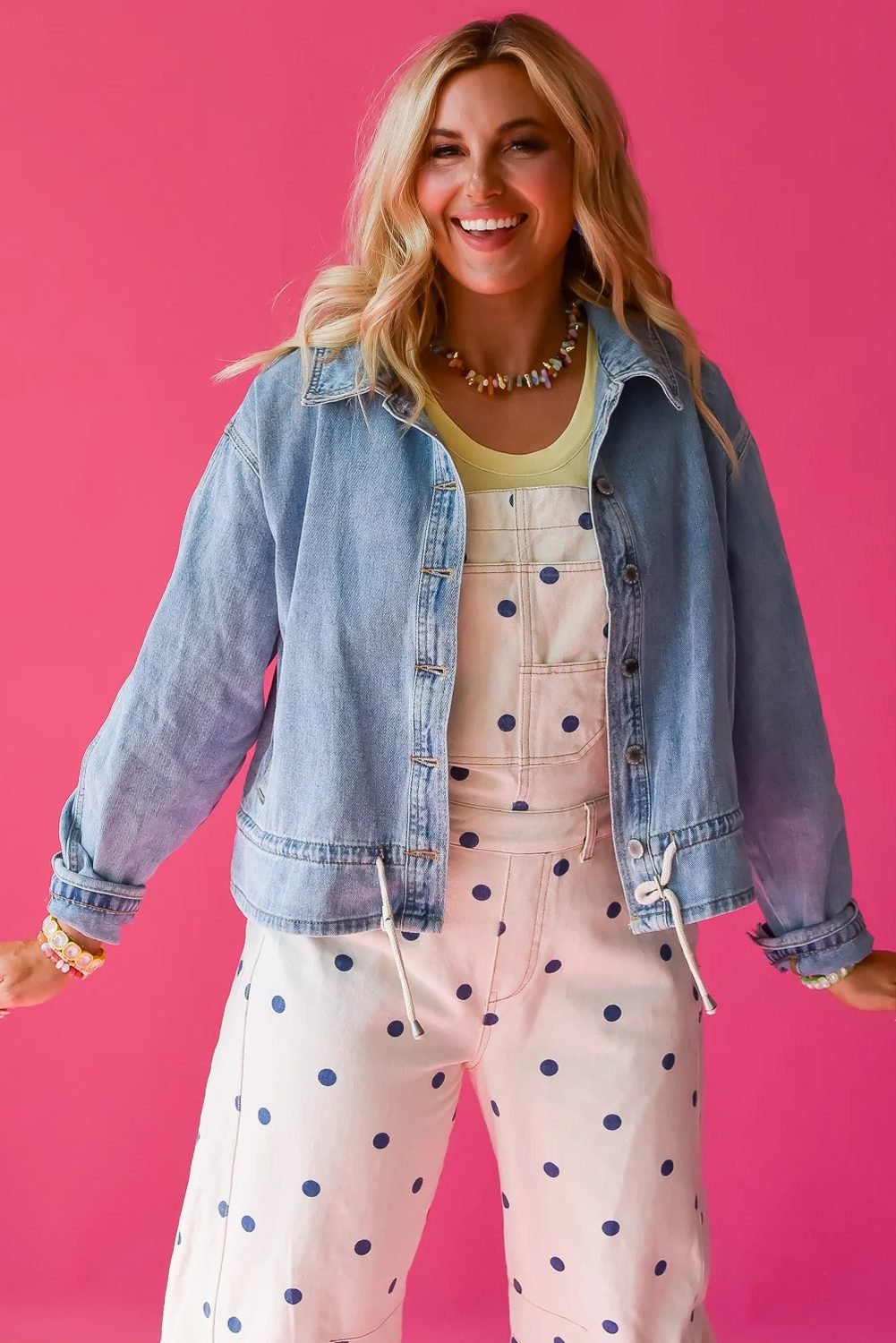 Beau Blue Draw-cord Hem Light Wash Denim Jacket