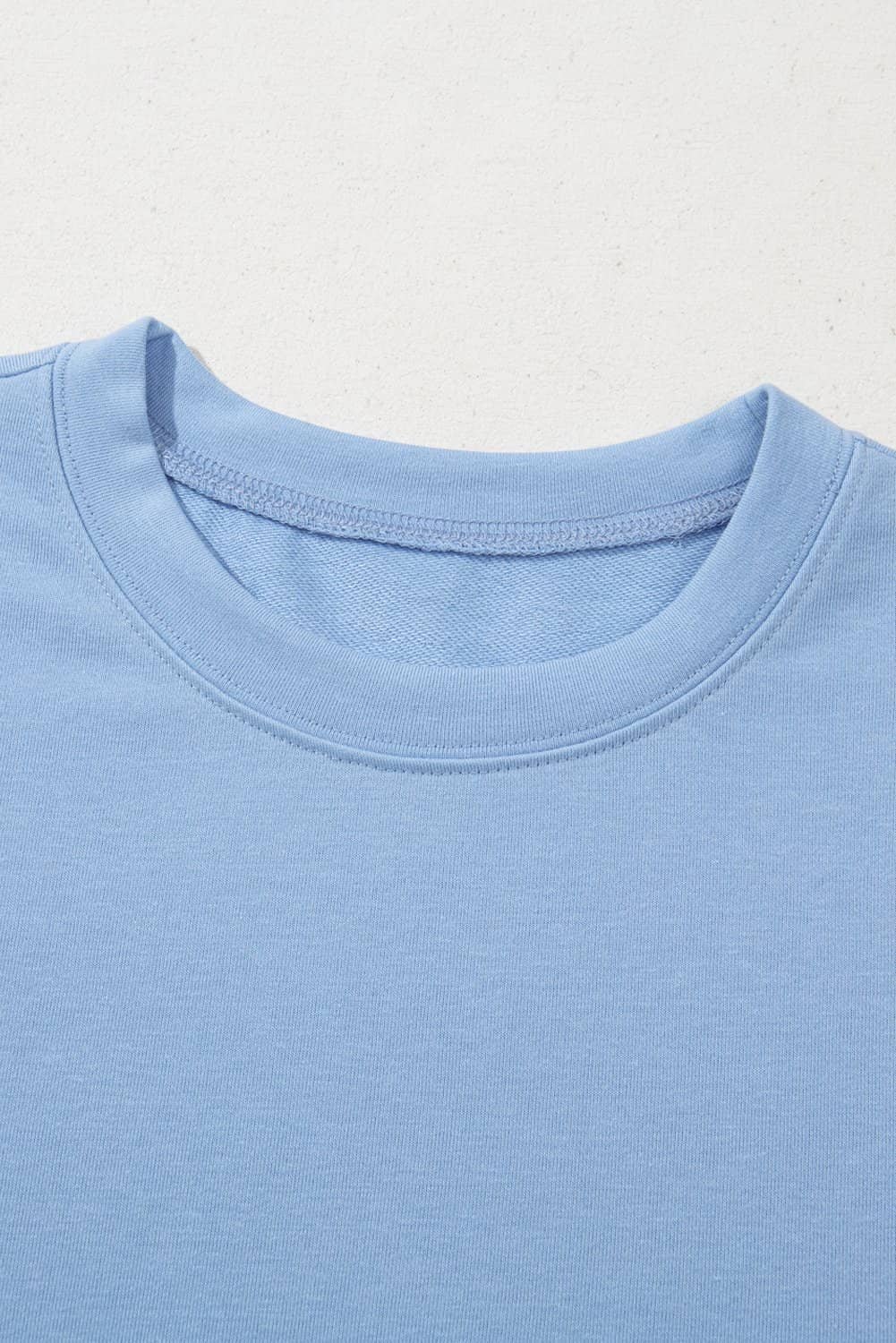 This women’s blouse has a crew neck, relaxed fit style and patchwork puff short sleeve.
