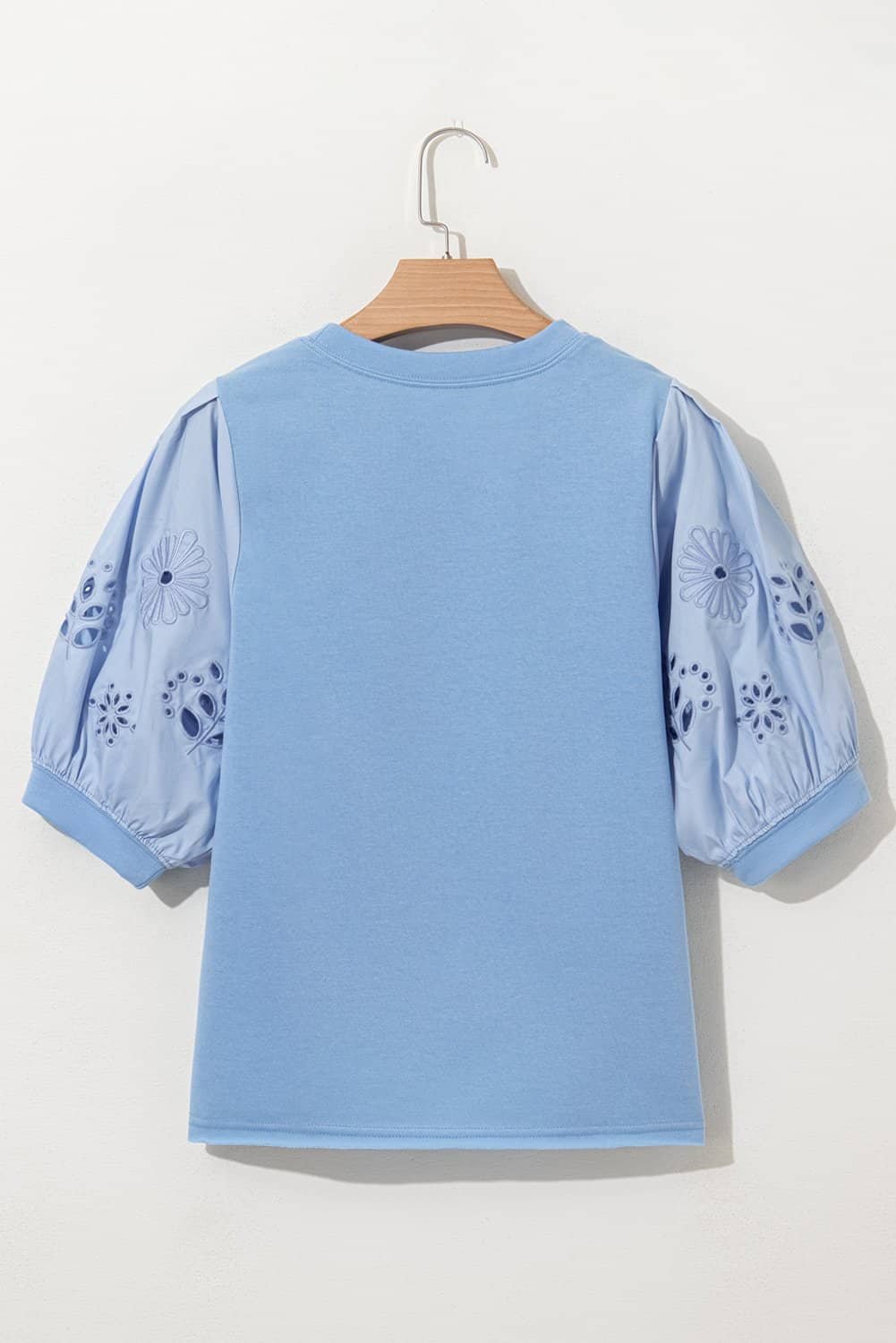 - Both the eyelet flower embroidered detail and puff sleeves are to make this top more graceful.