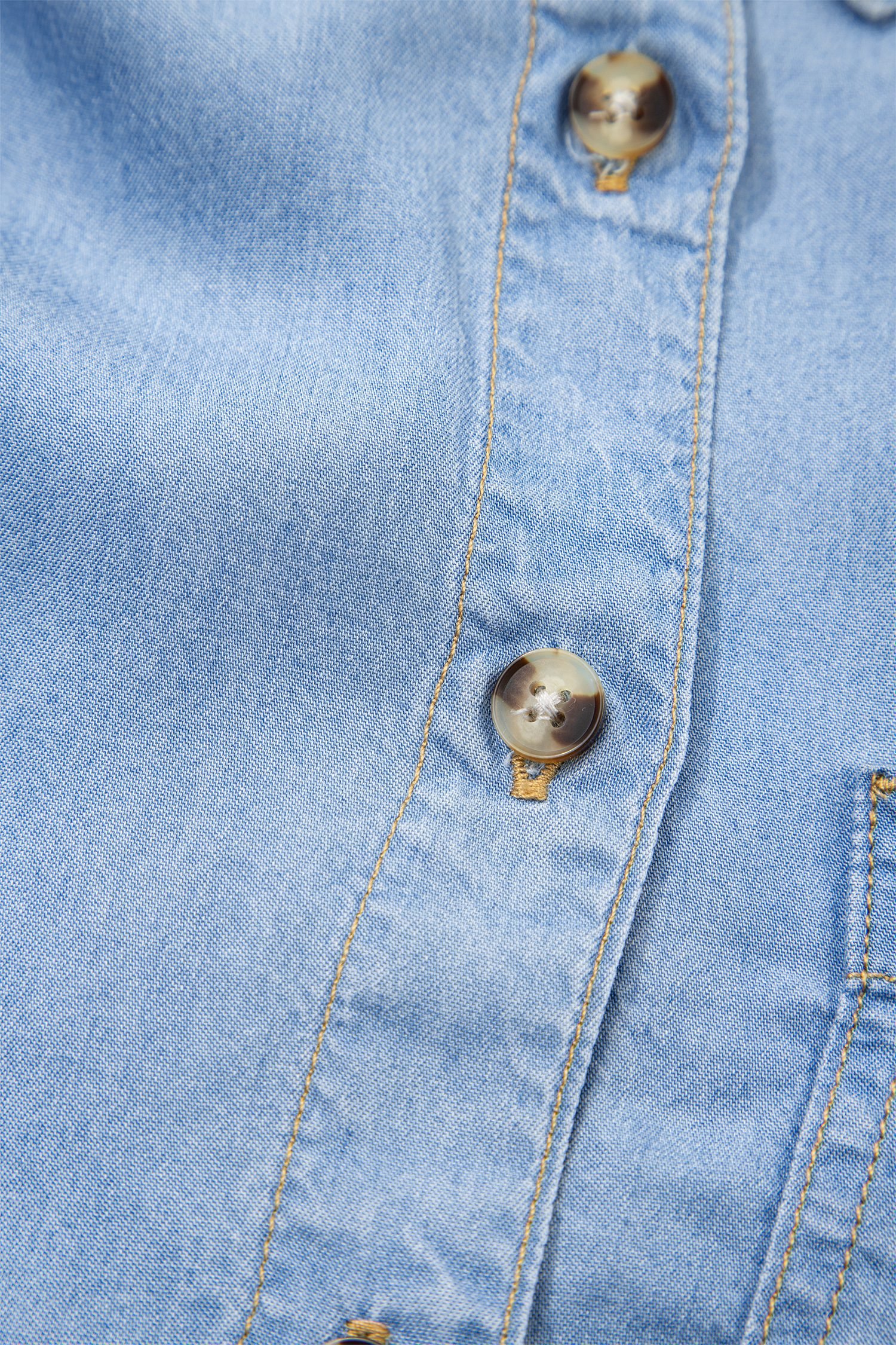 Lightweight chambray fabric offers breathable comfort for this denim shirt.