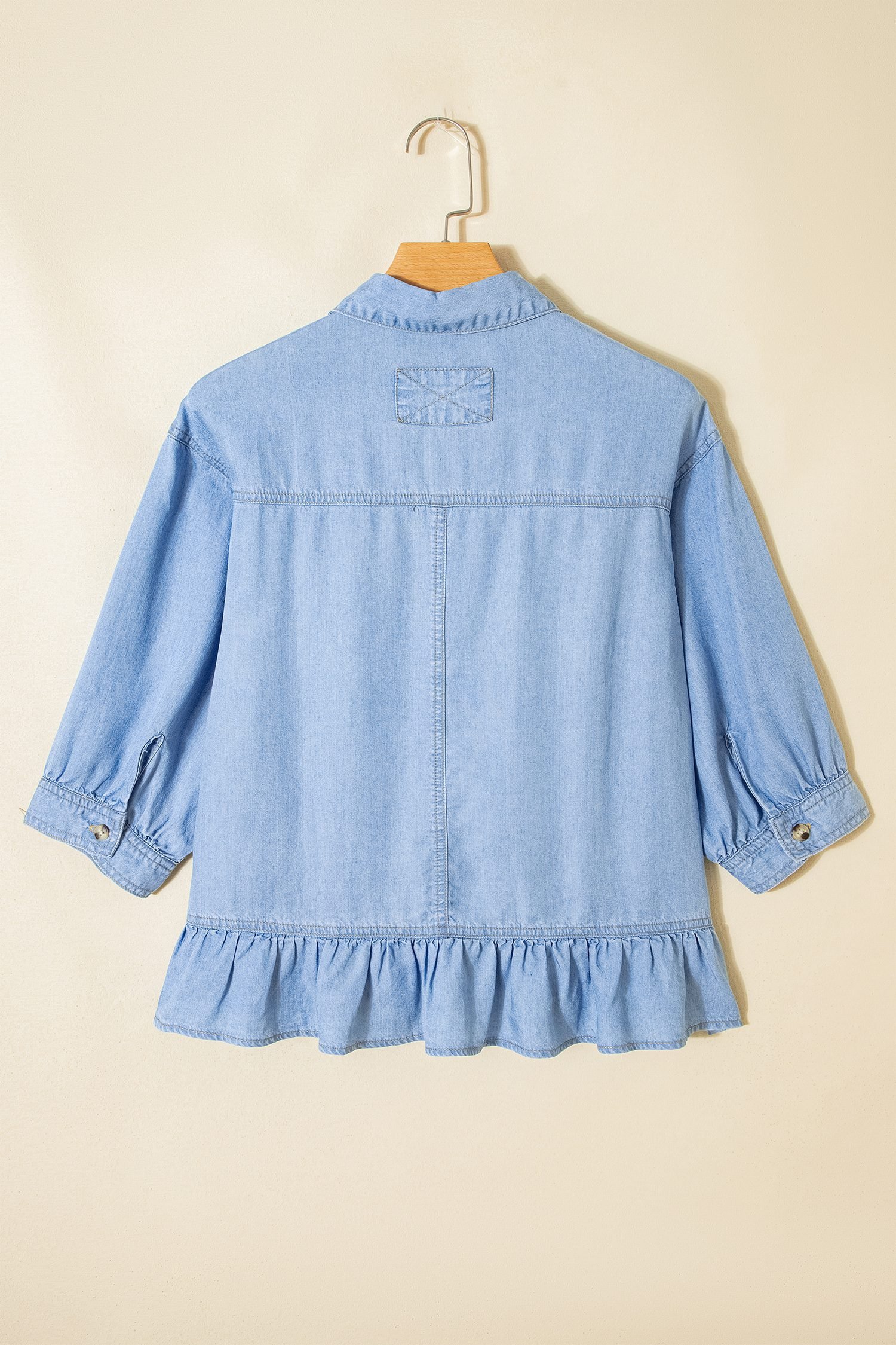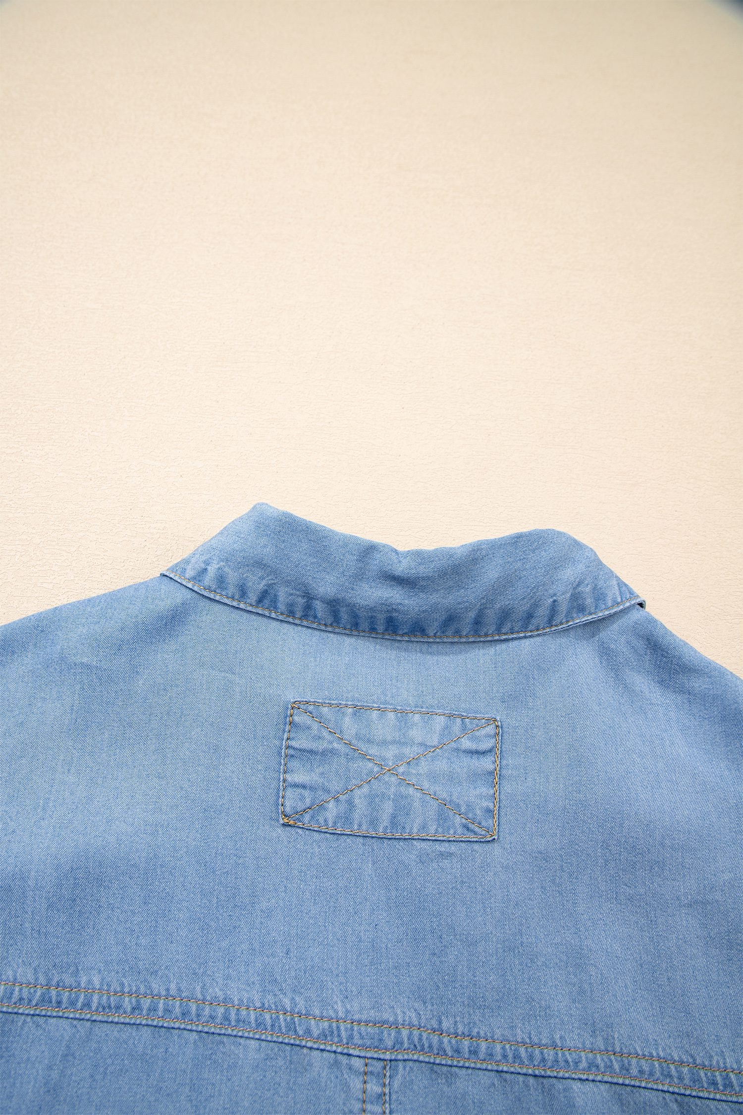 Button down front creates this chambray shirt a classic, easy-to-style.