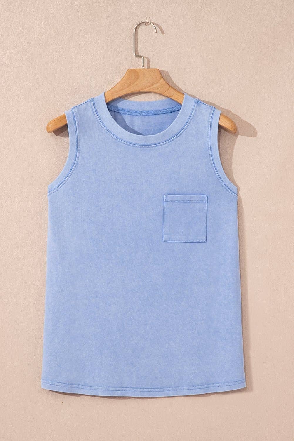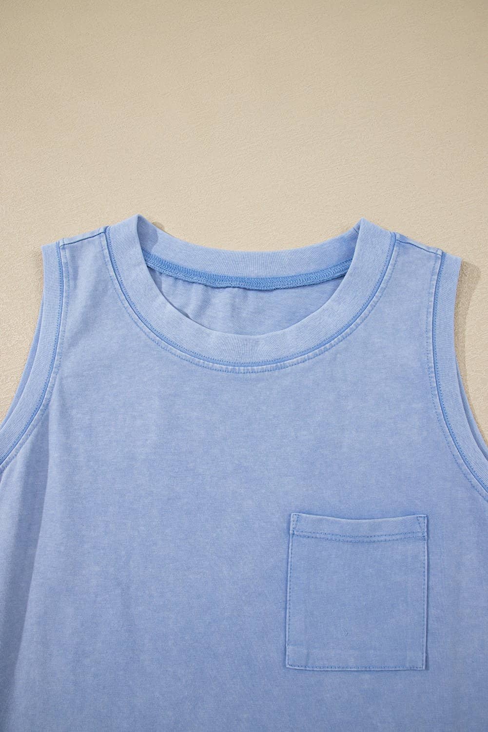 Beau Blue Mineral Wash Patched Chest Pocket Casual Tank Top