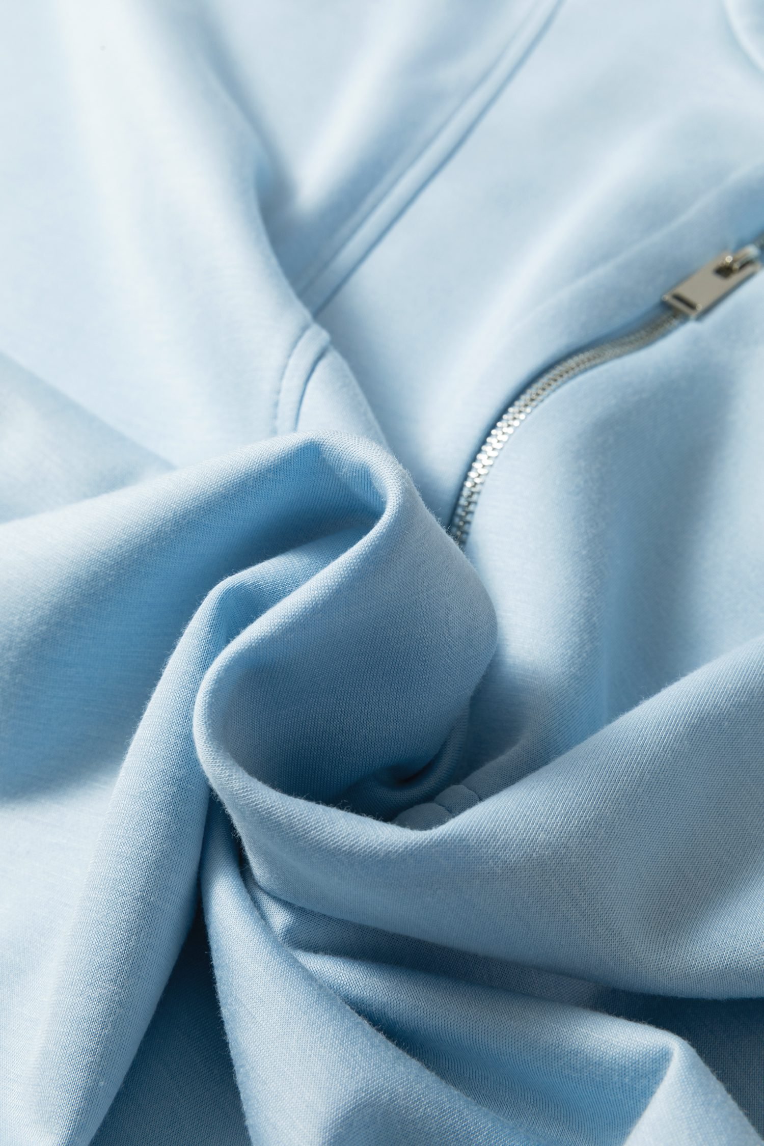 The loose top has a pop collar and a half-zip closure.