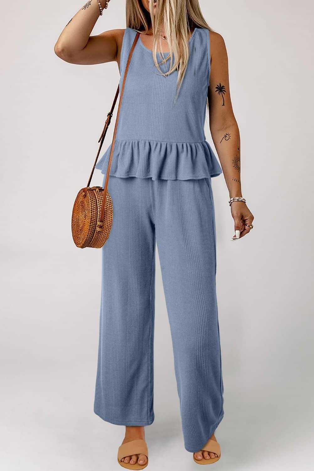 Add a feminine flair with a ruffled hem tank top that brings a playful and romantic vibe.