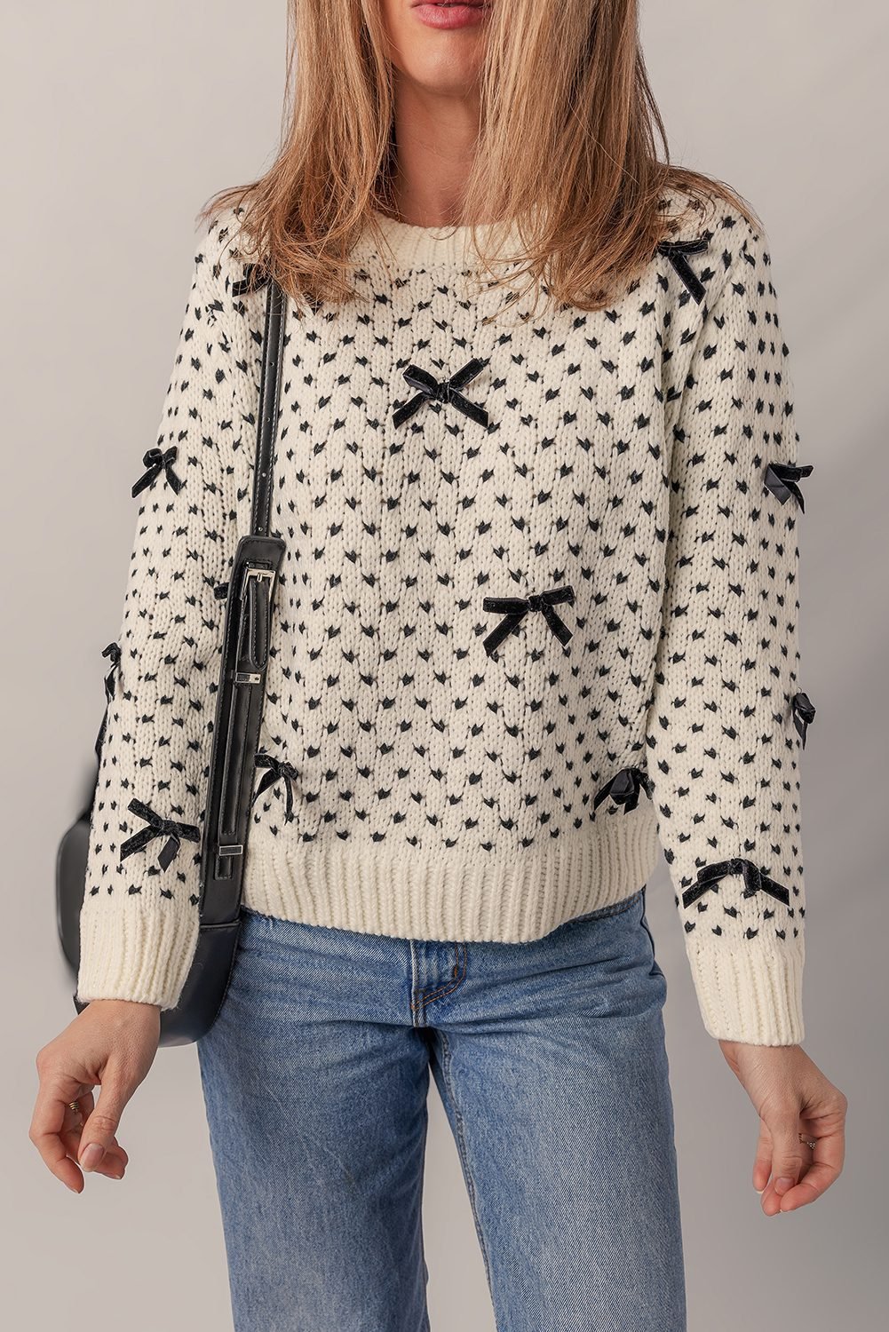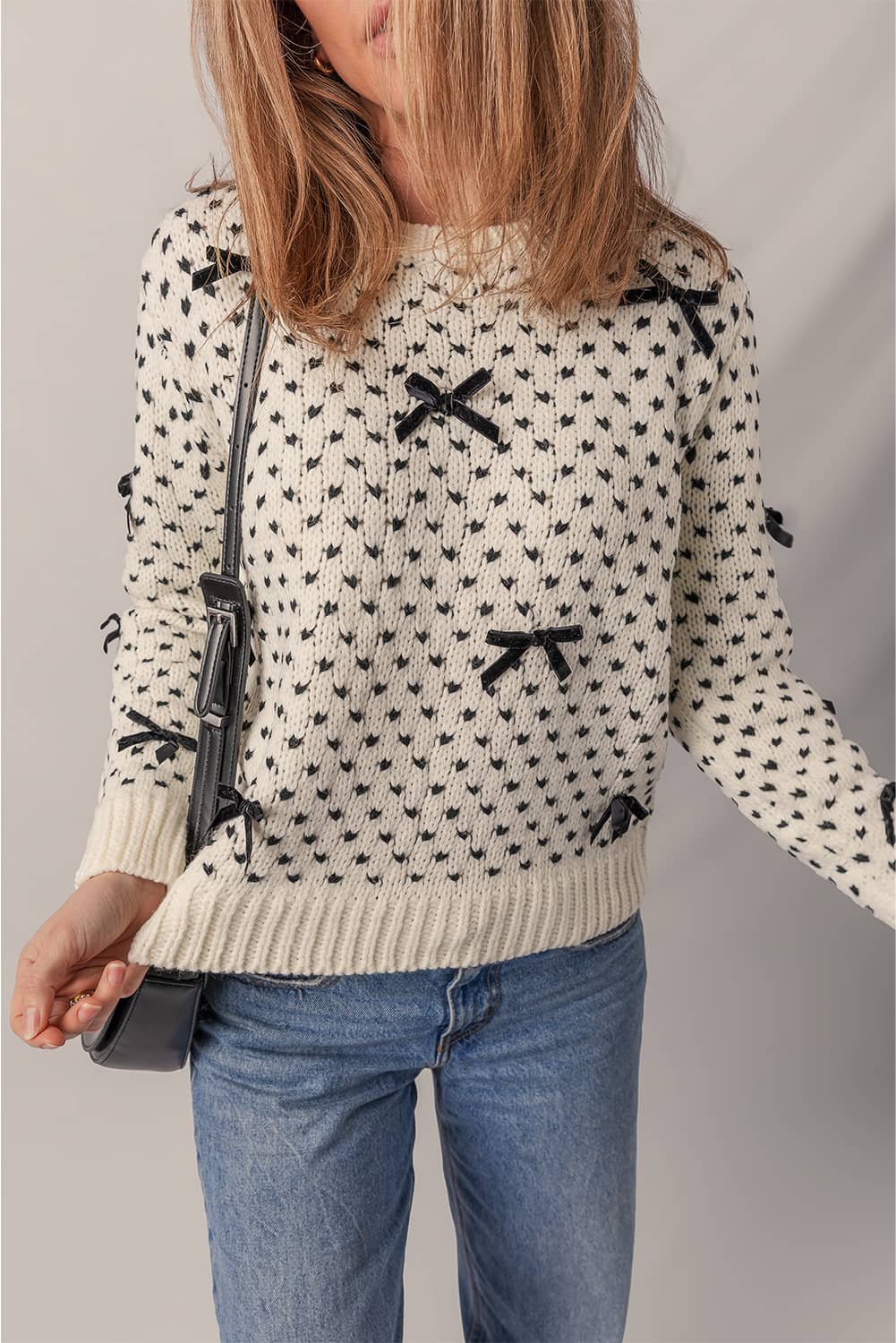 • Cute bow decor adds a sweet, feminine detail to this knit sweater.