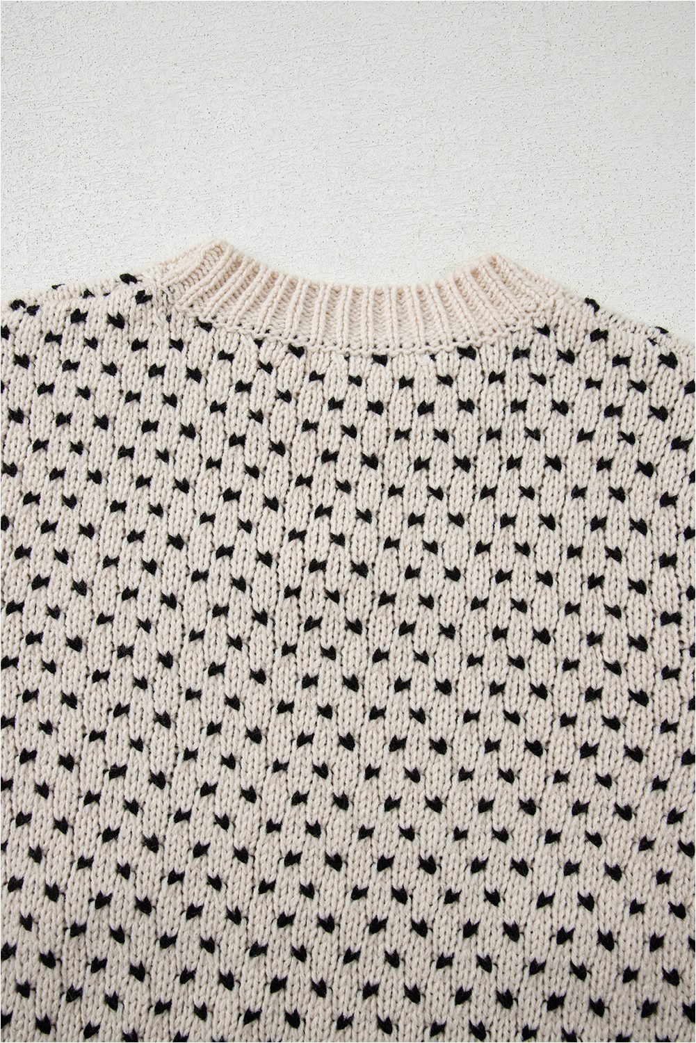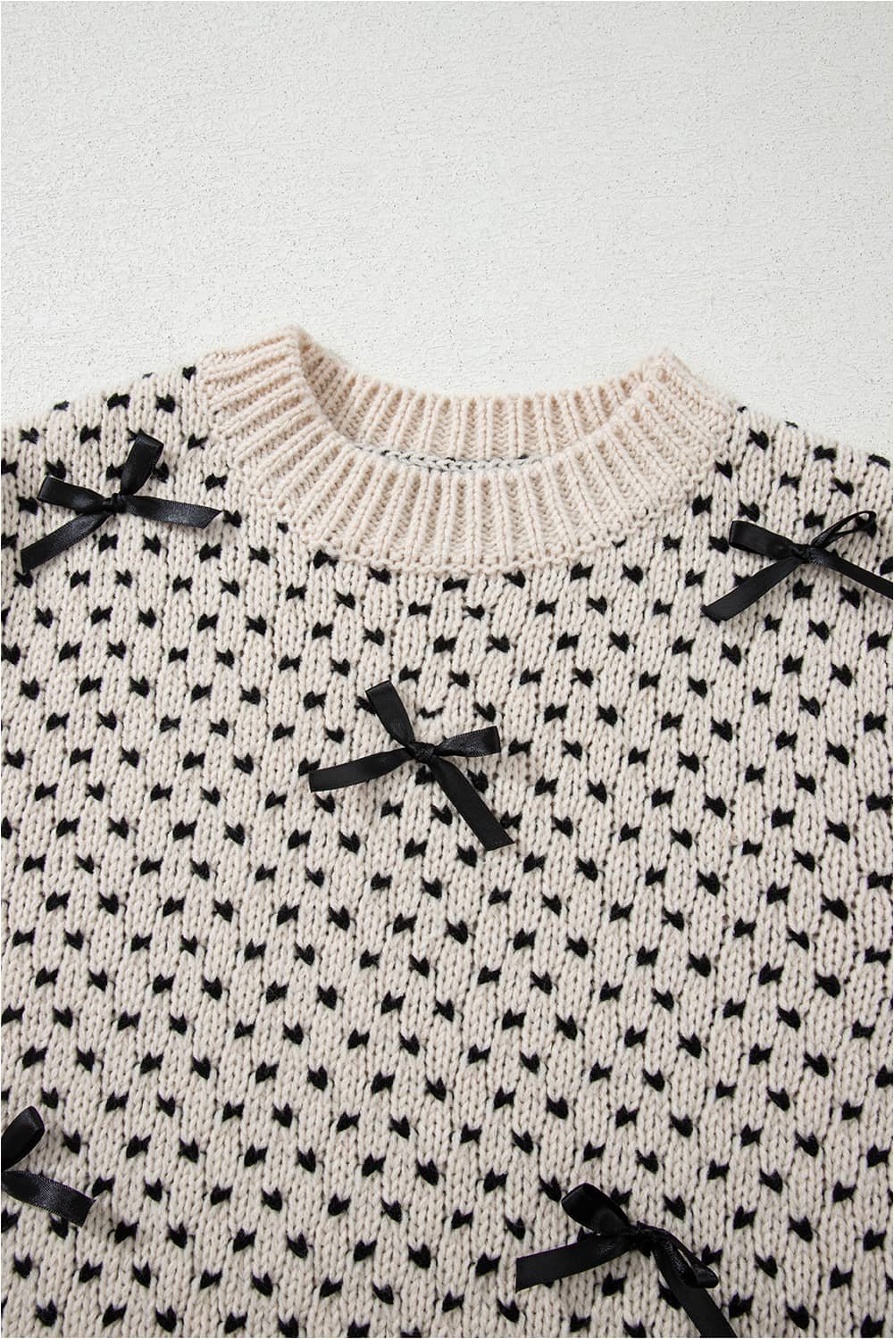 Be the first to review “Beige Bow Decor Color Contrast Ribbed Edge Crew Neck Sweater”