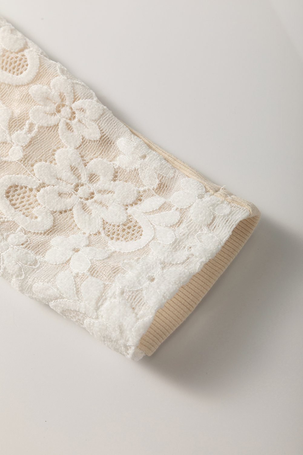 Beige Floral Lace Patchwork Long Sleeve High Neck Slim Top