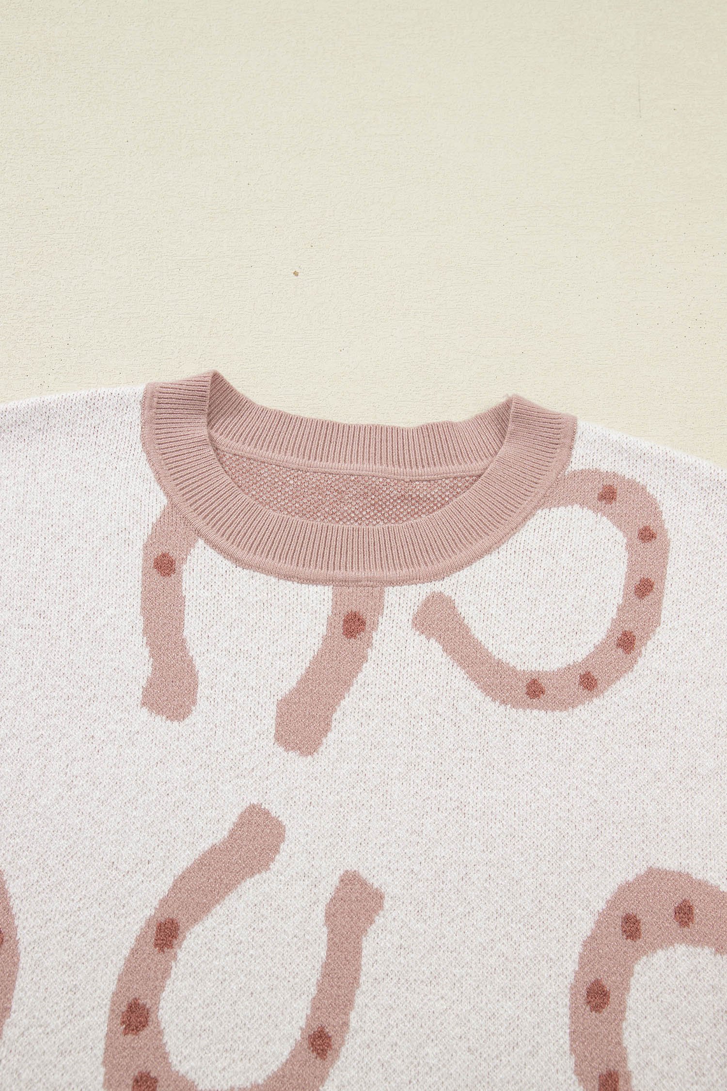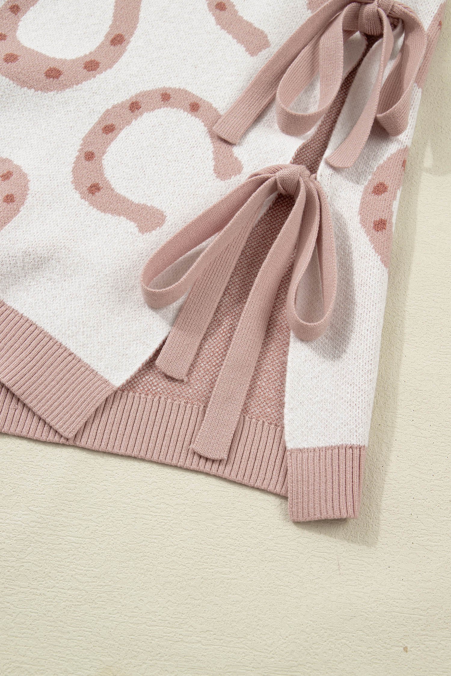 Beige Horse Shoe Western Print Tied Side Cap Sleeve Knitted T Shirt