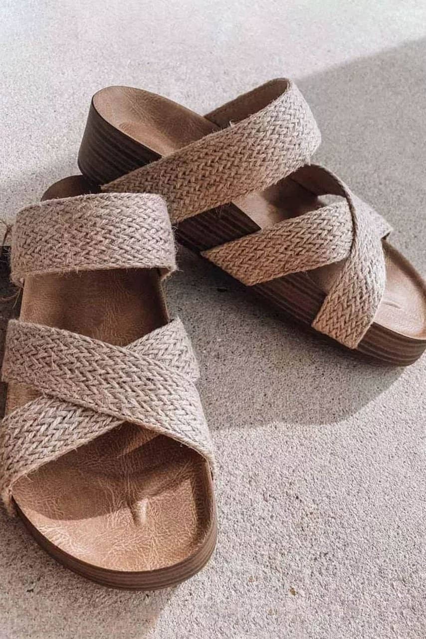 - There are vintage linen woven crisscross straps to add a touch of elegance