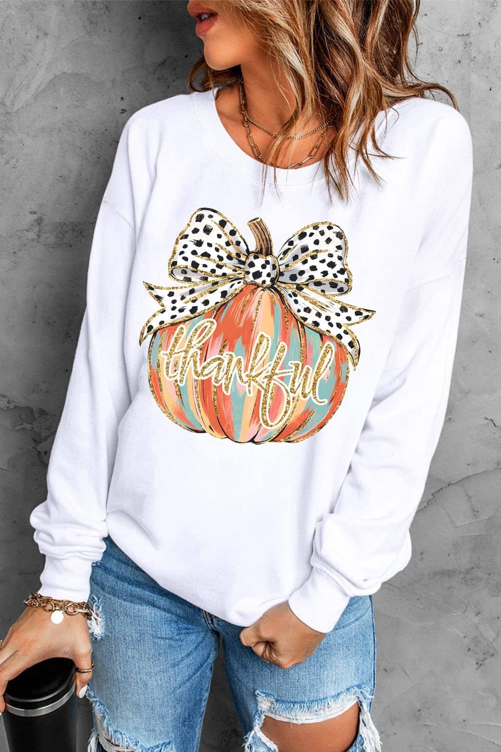 Embrace fall vibes with a charming pumpkin print with a polka-dot bow.