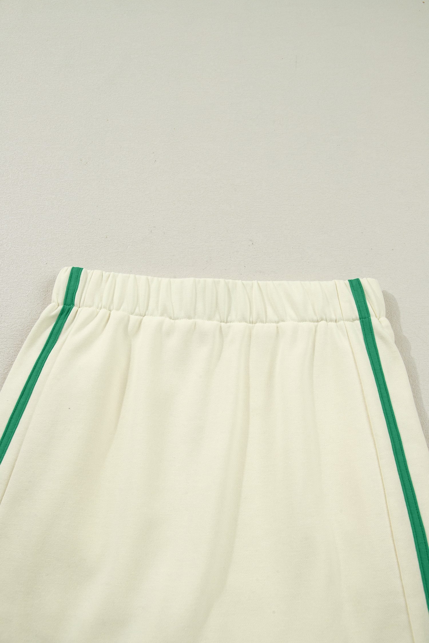 The contrast ribbed trim adds a modern edge to this skirt set.