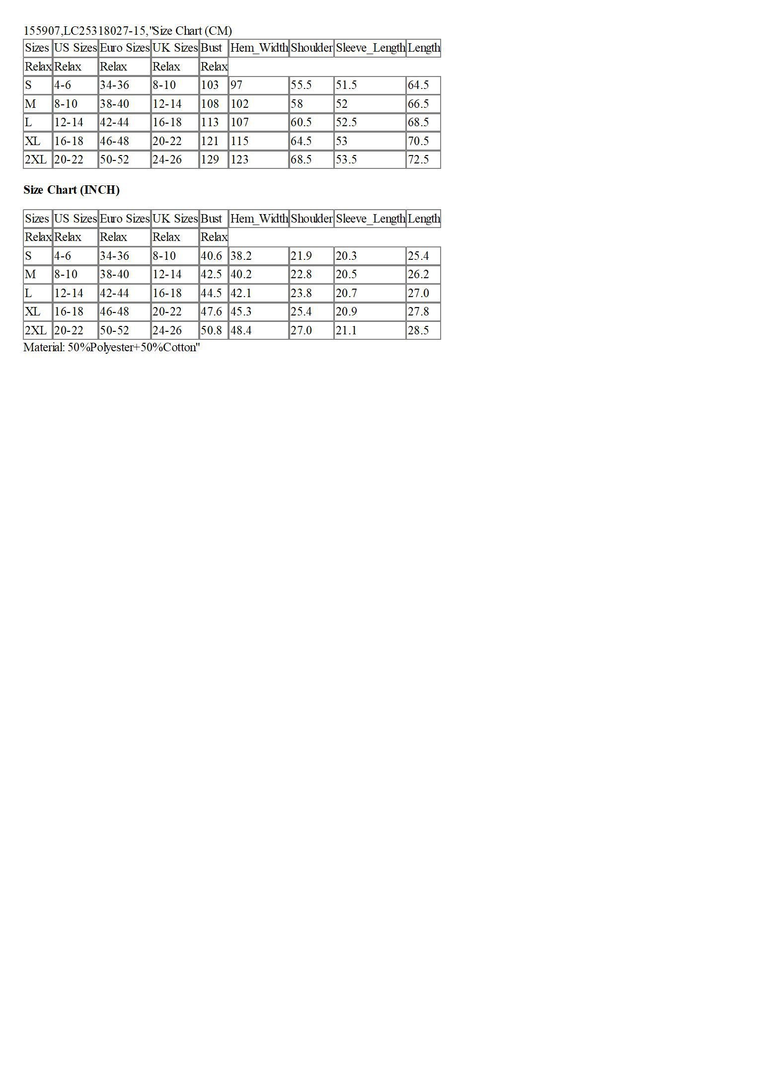 Sizes | US Sizes | Euro Sizes | UK Sizes | Bust | Hem_Width | Shoulder | Sleeve_Length | Length |