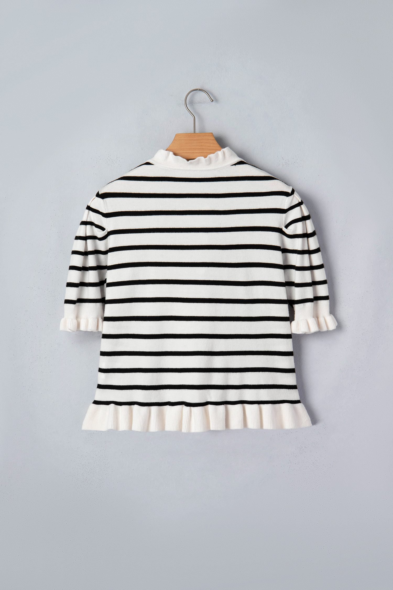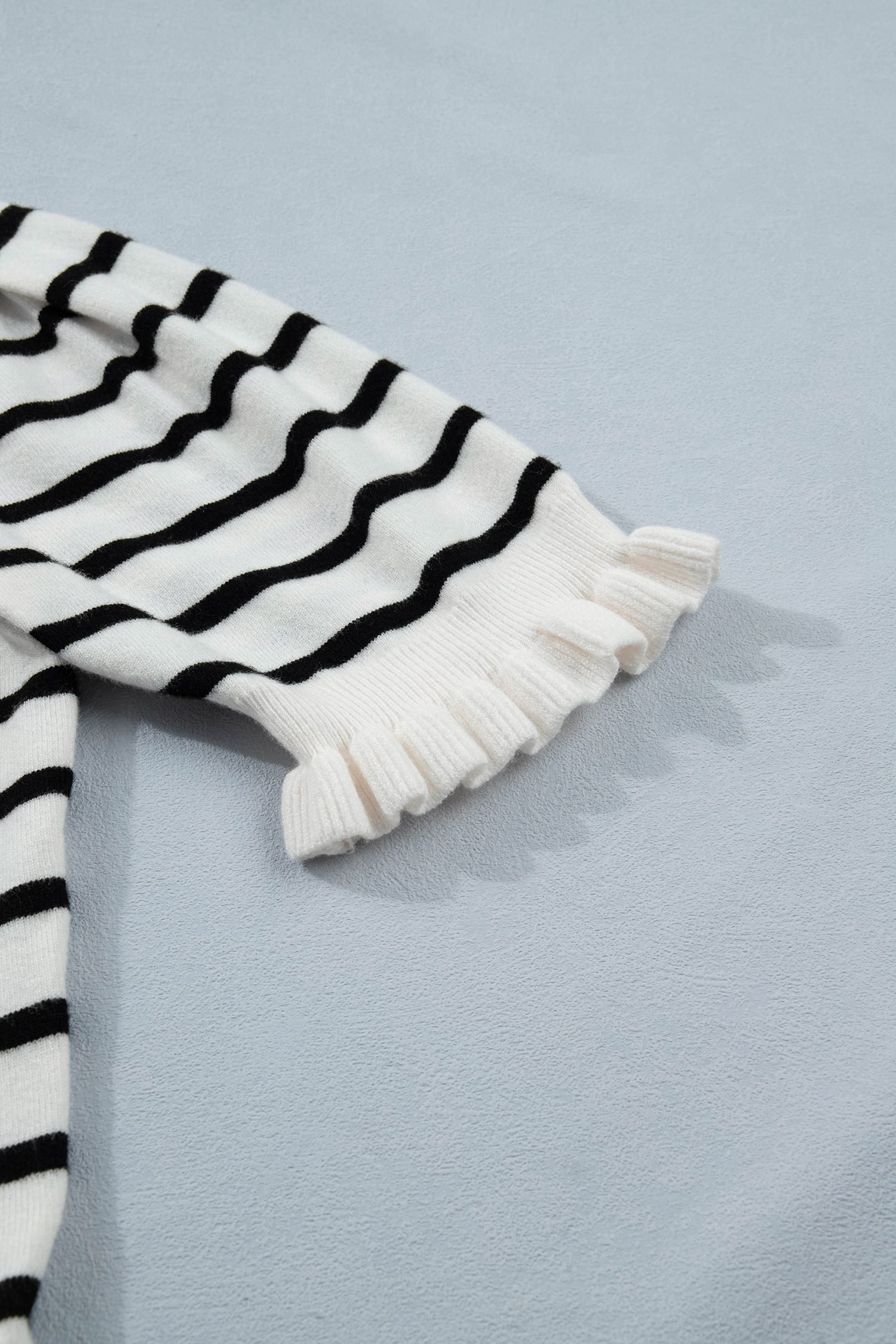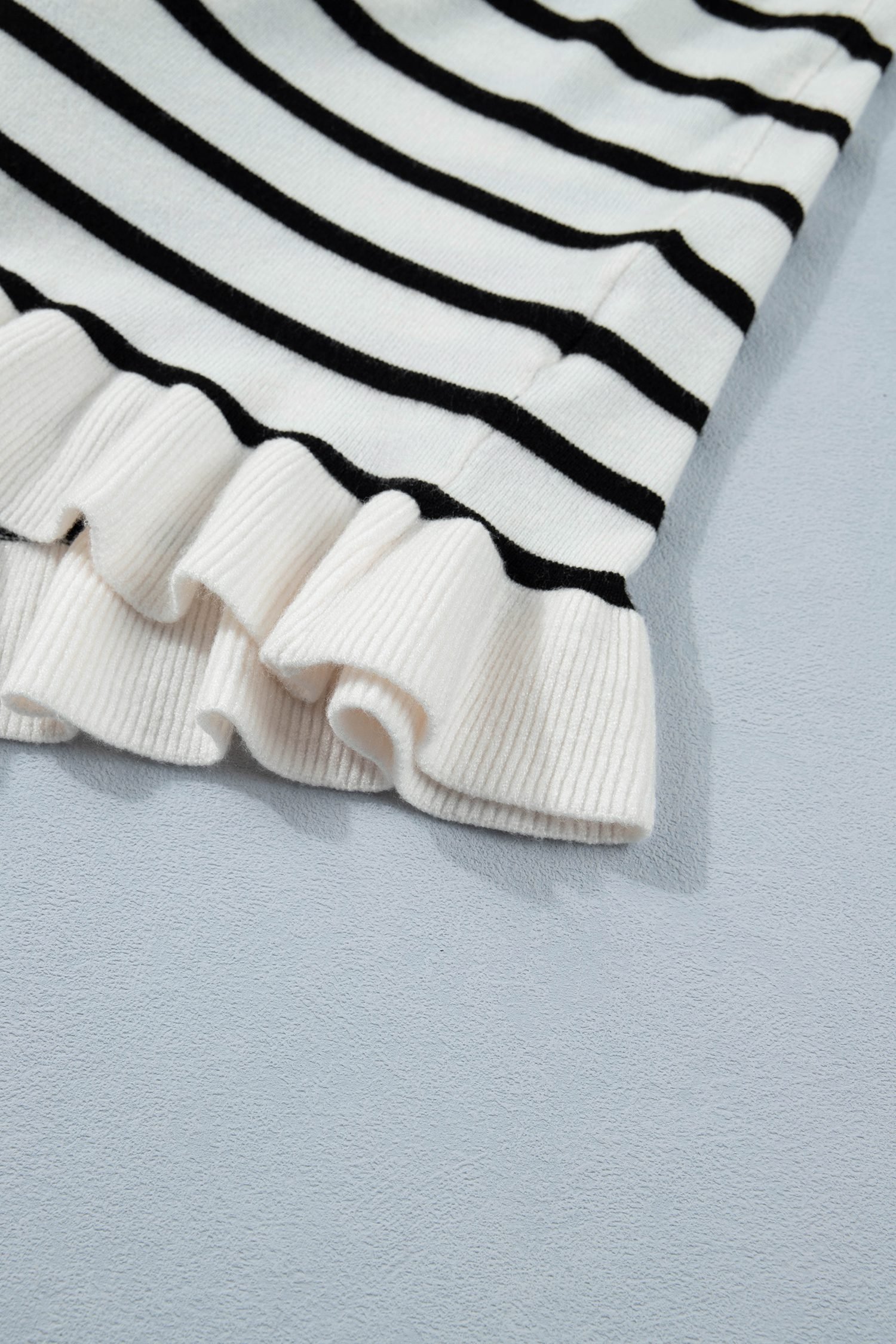 Featuring a stylish striped pattern and contrast ruffled details.