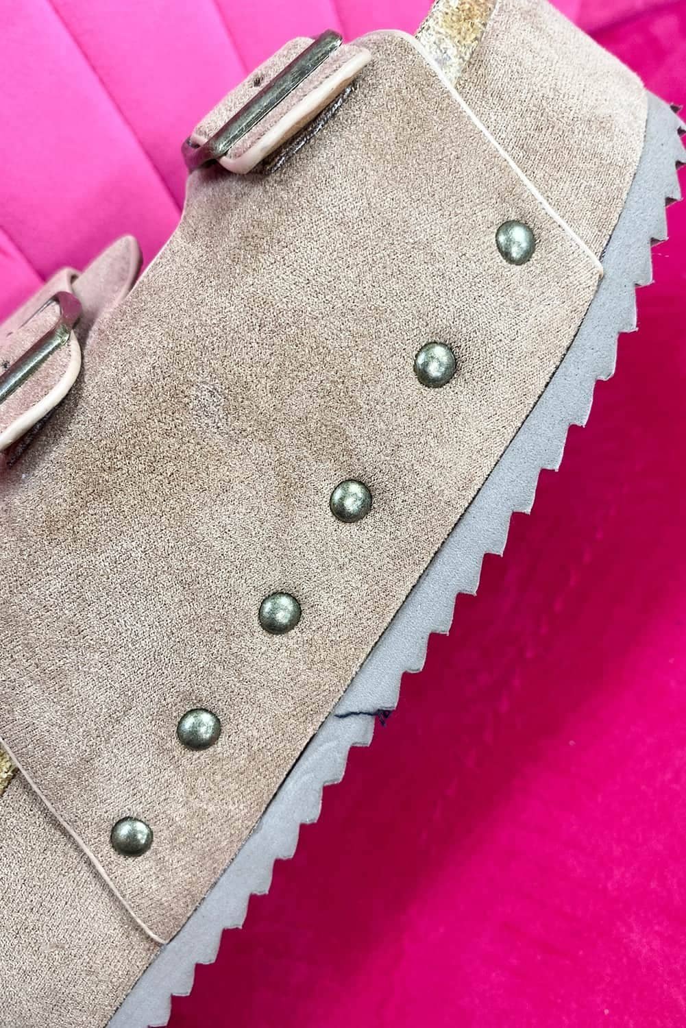 Beige Suede Buckle Decor Footbed Sandal Slippers