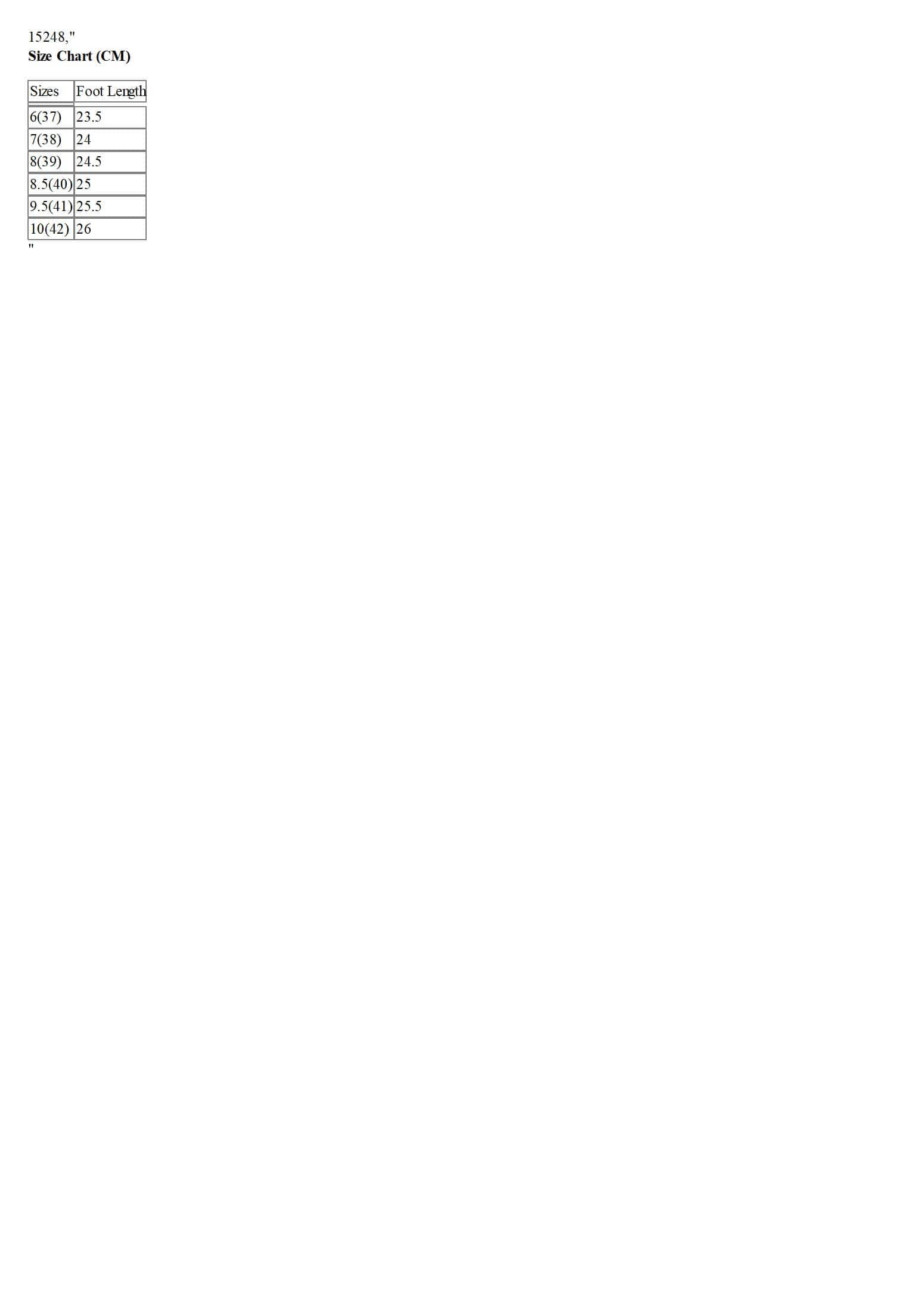 Size Chart (CM)