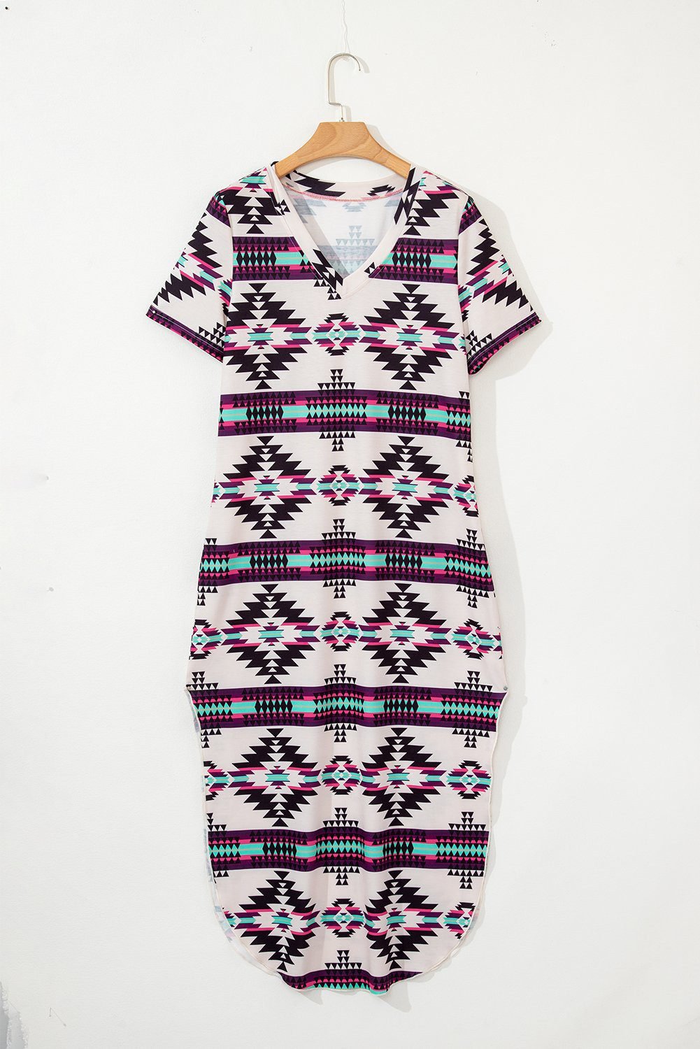 - This long dress is classic and fashionable with western Aztec pattern.