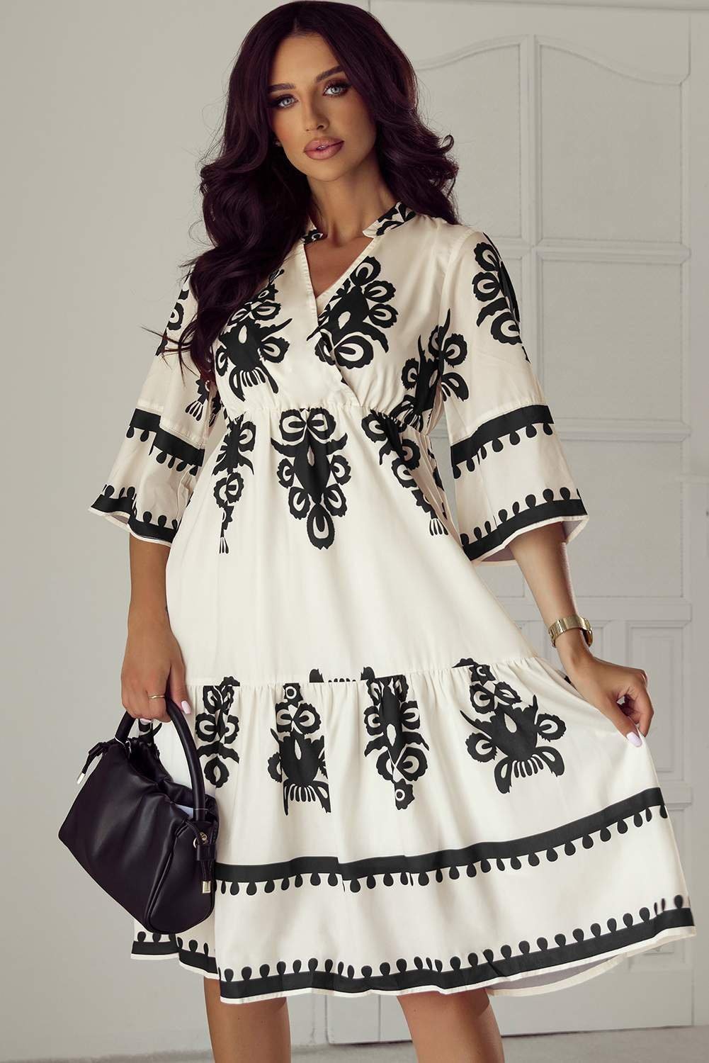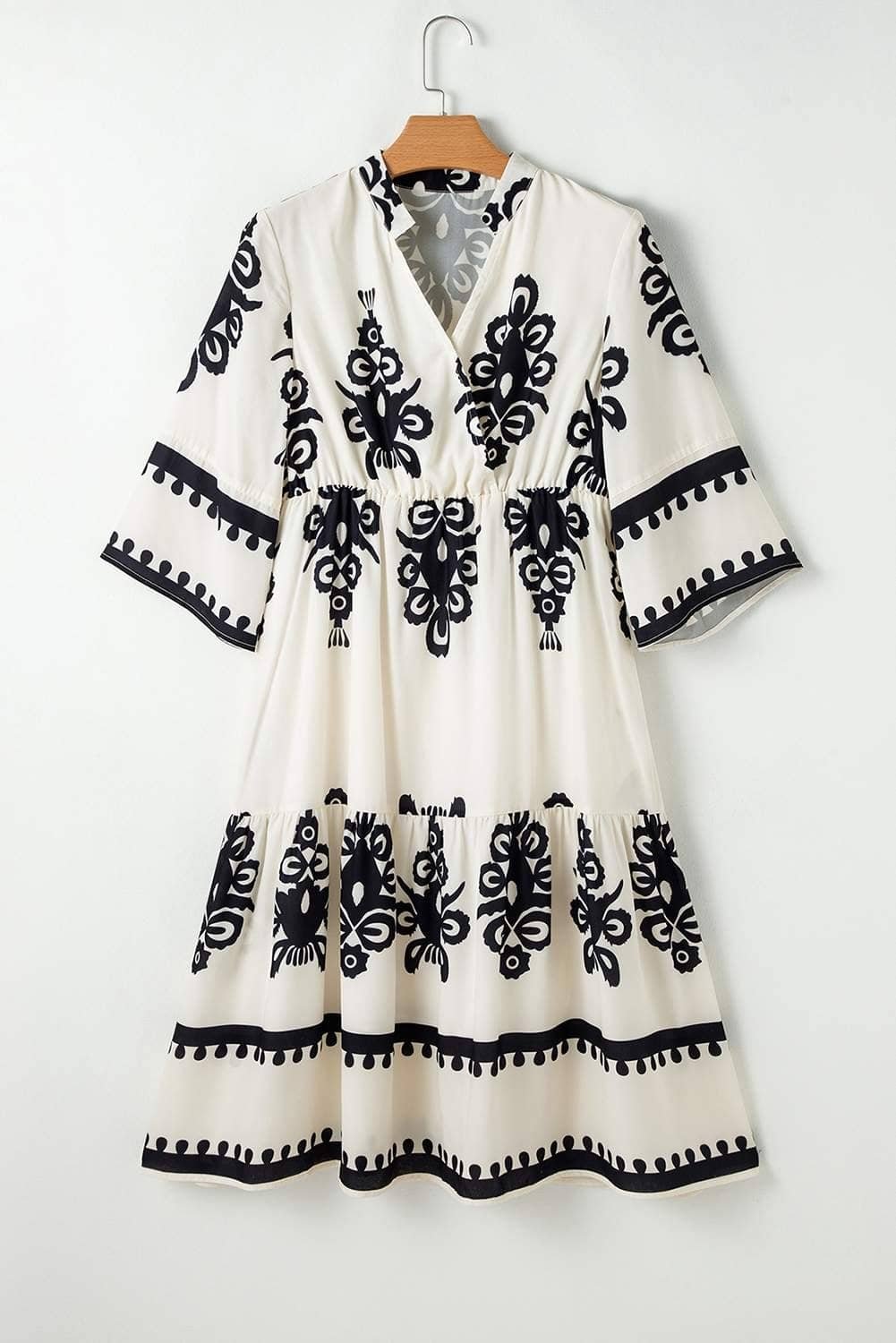 Be the first to review “Beige Western Geometric Print 3/4 Sleeve Loose Midi Dress”