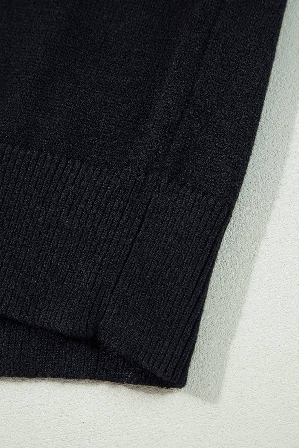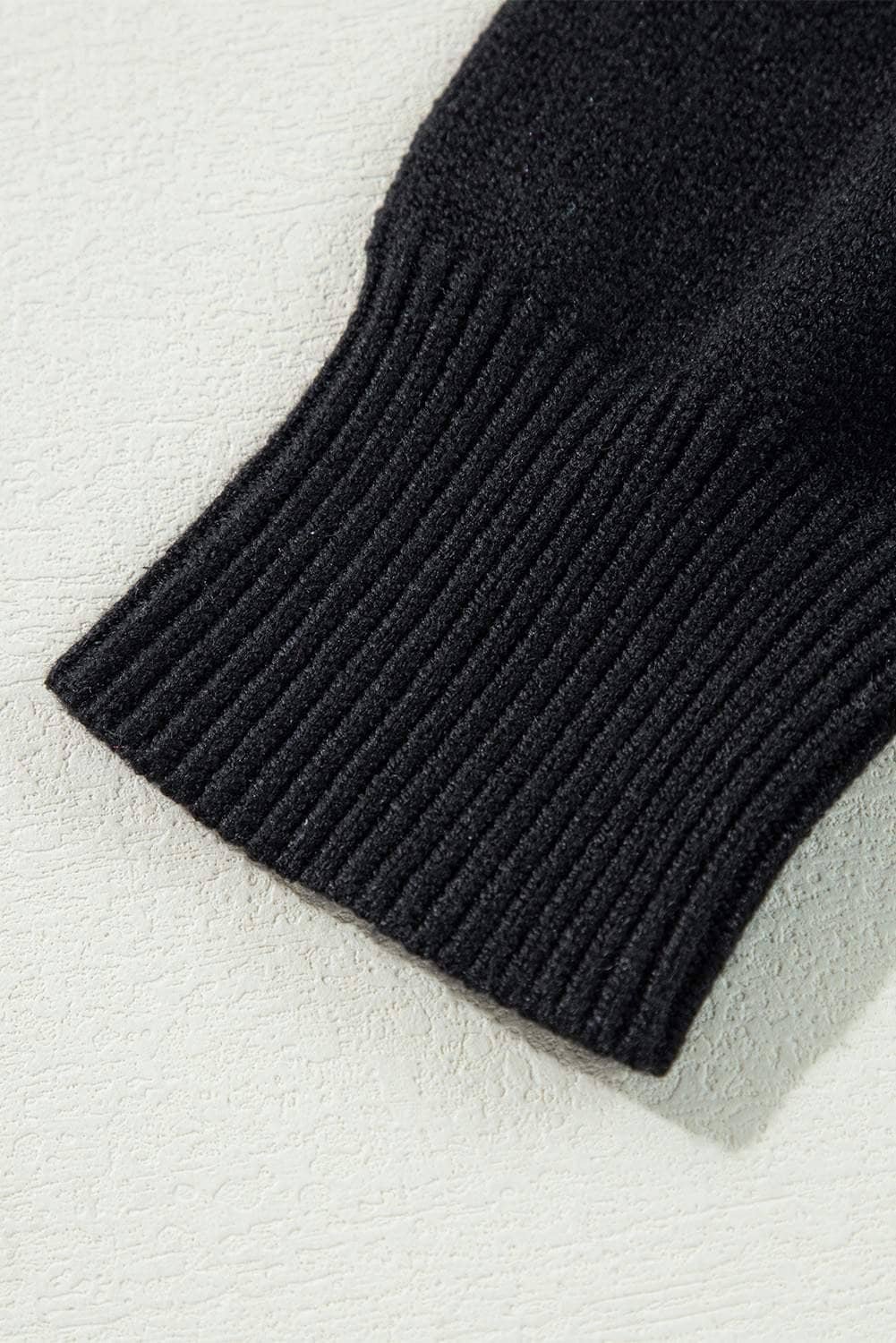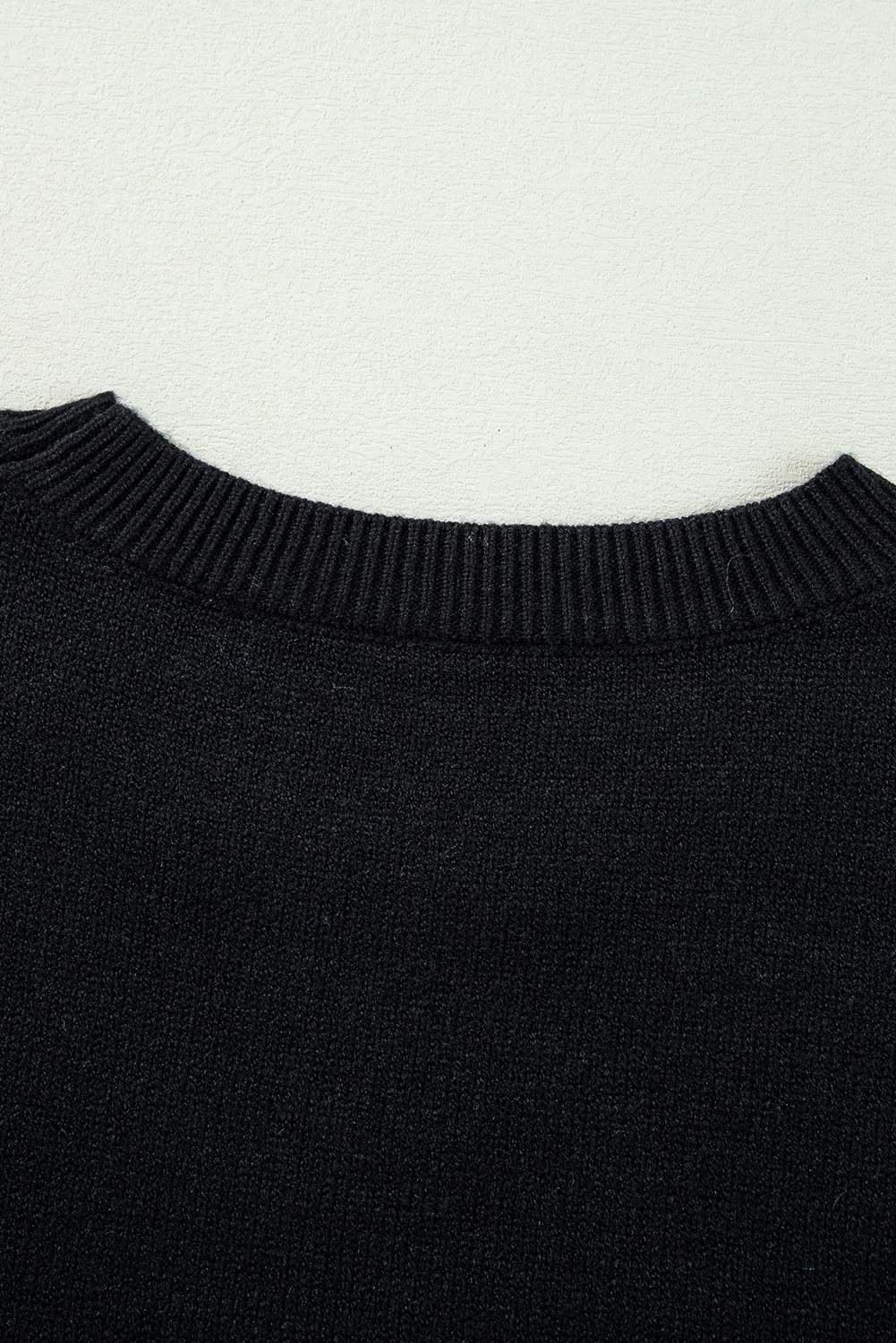 Black Boo Knitted Pattern Ribbed Edge Drop Shoulder Sweater