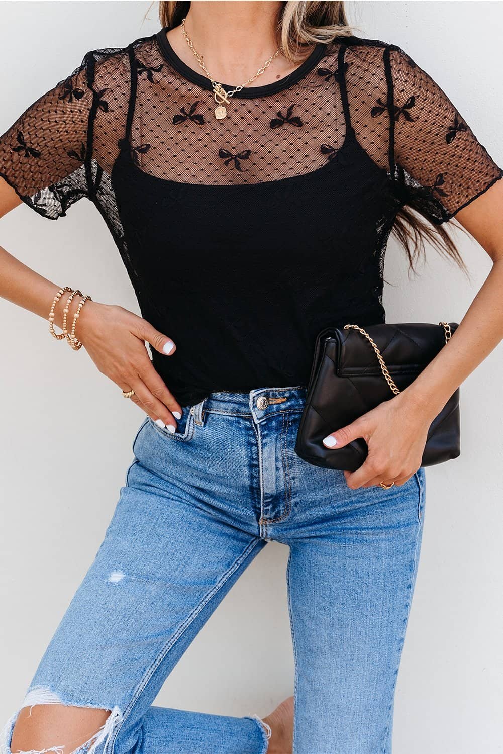 - This mesh top is sexy sheer.