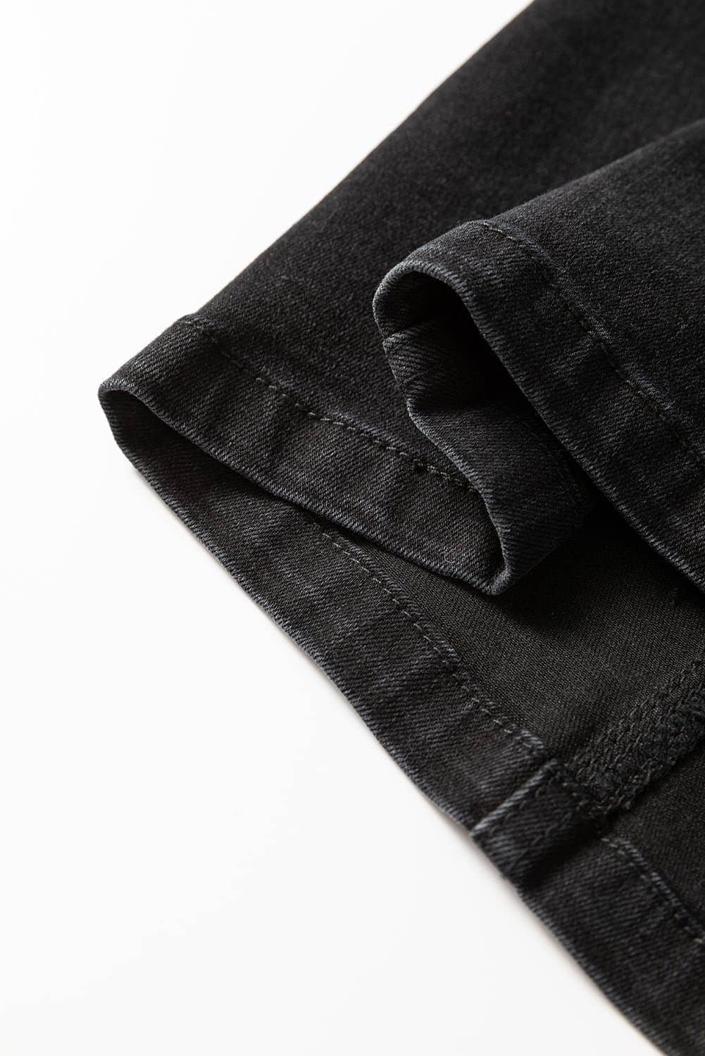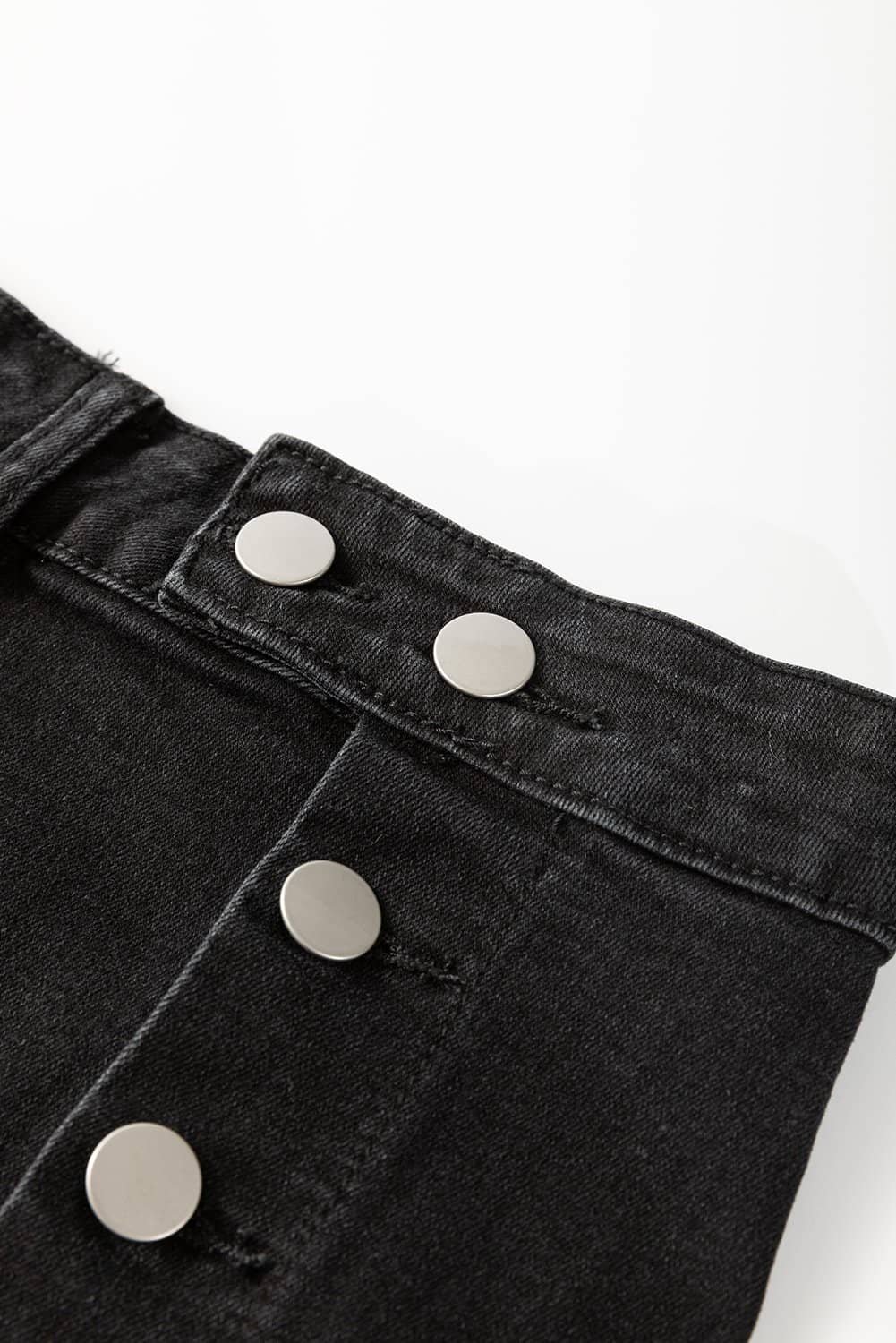 Black Button Fly Side Split High Waist Denim Midi Skirt