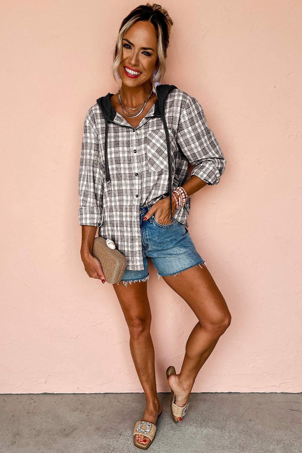 The checkered print is a timeless addition that brings visual interest to the shacket.