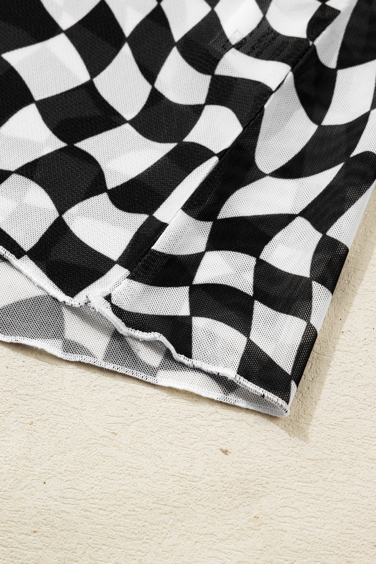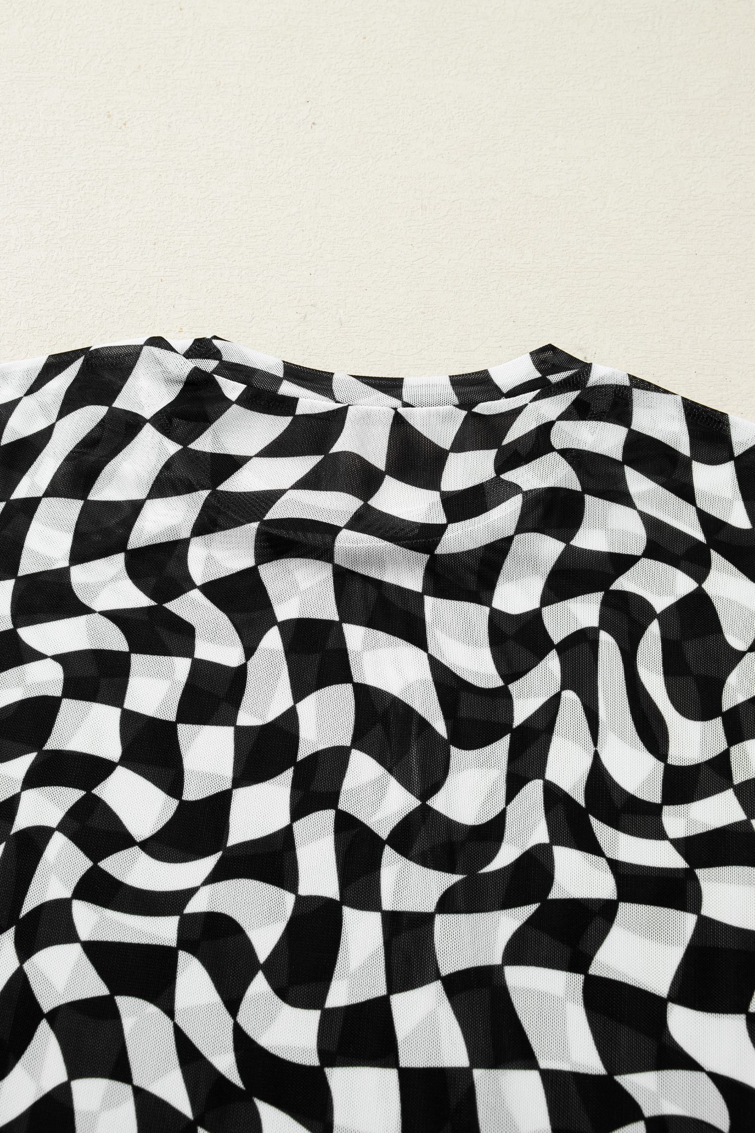 Be the first to review “Black Checkered Print Mock Neck Mesh T Shirt”