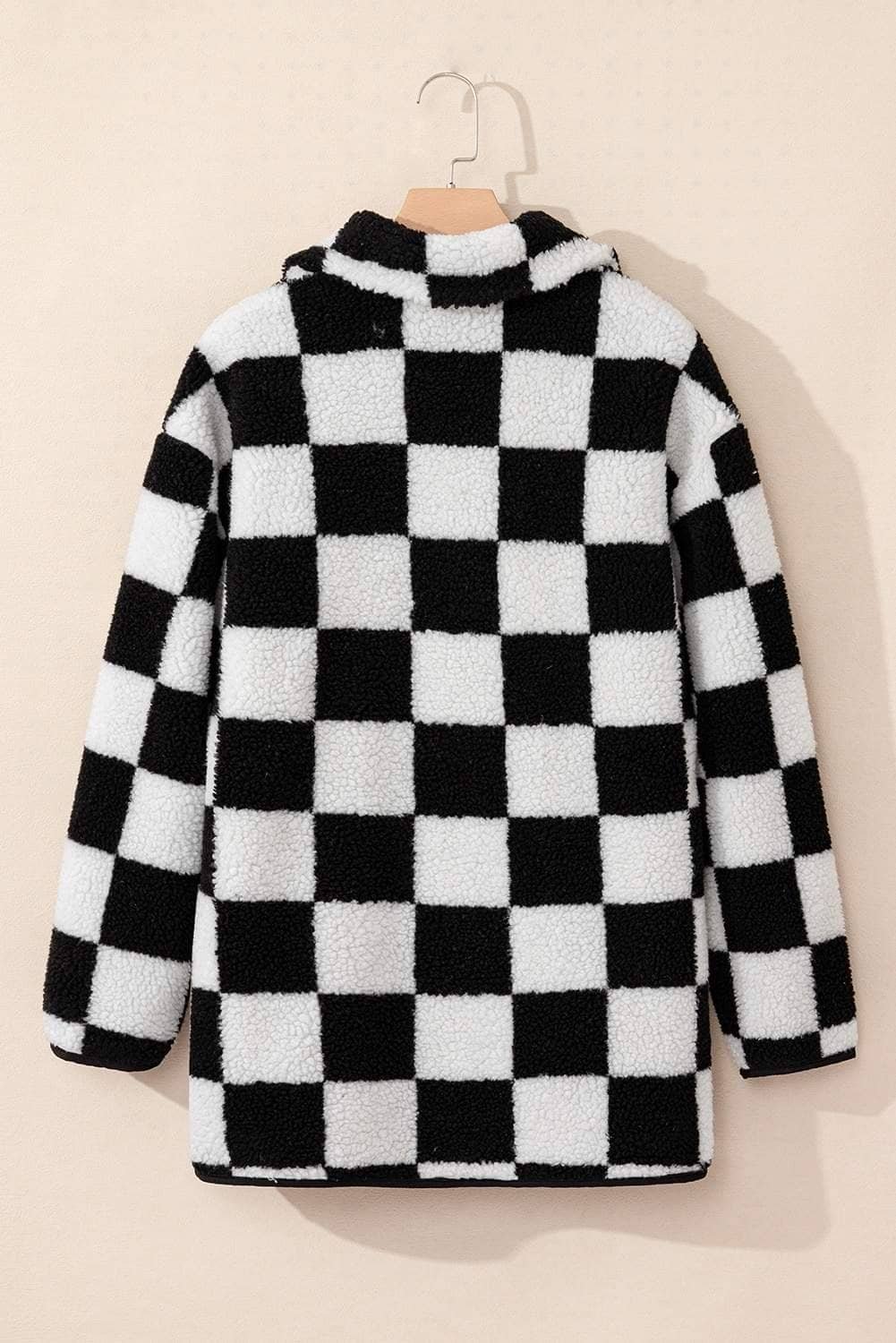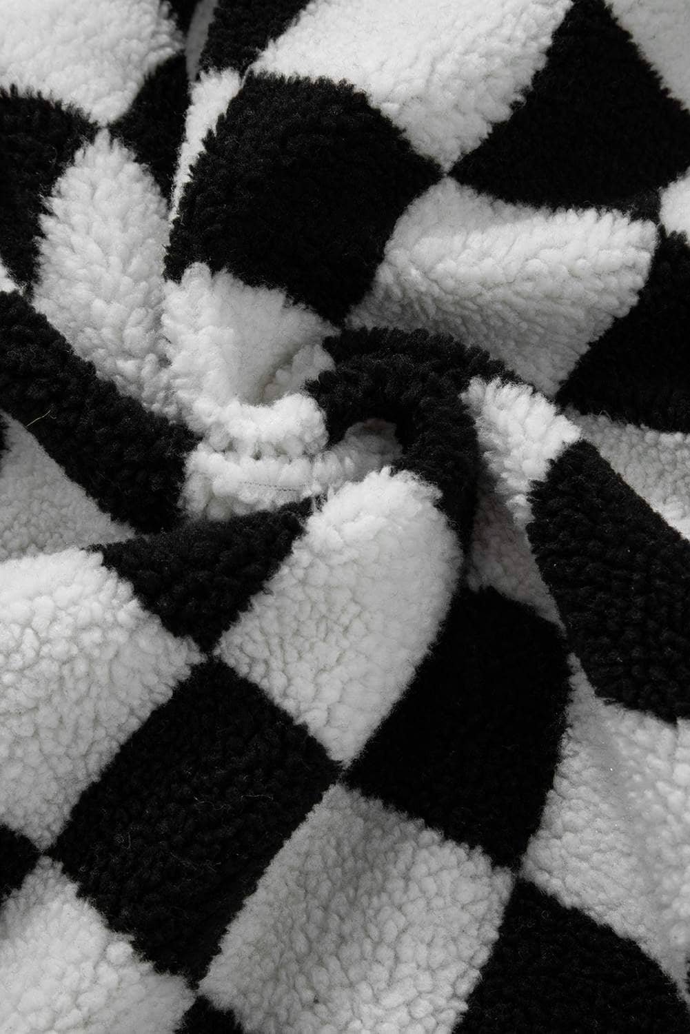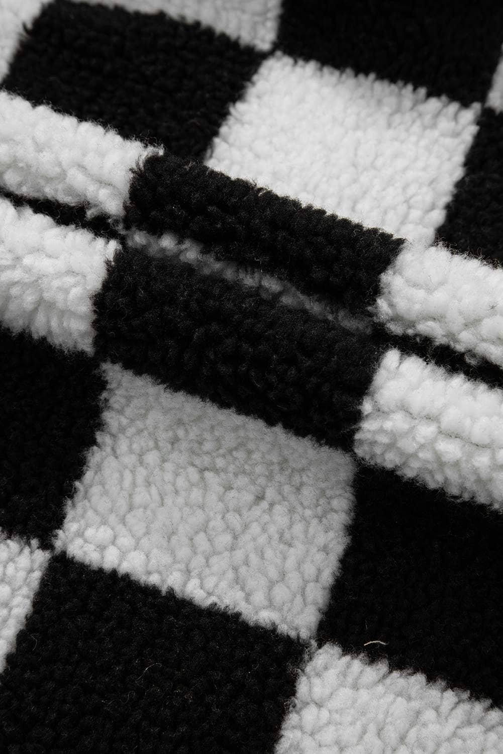 - Stay stylish and cozy with this checkered fleece jacket.