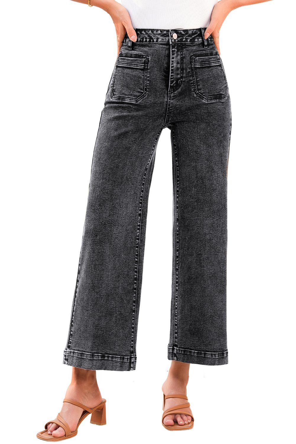 - Trendy patch pocket design adds a stylish twist to classic denim.