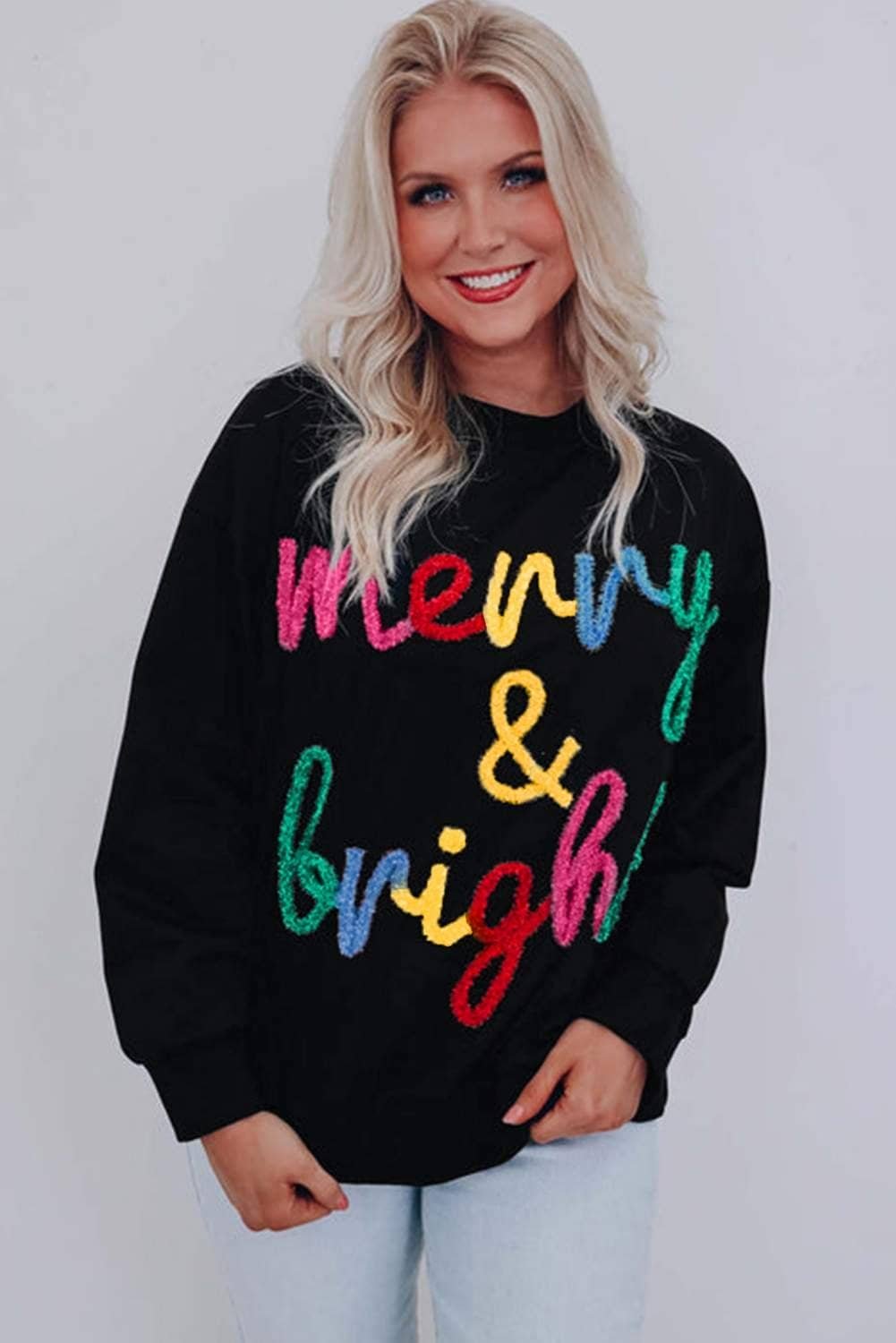 - Vibrant and eye-catching tinsel script graphic makes a bold statement.