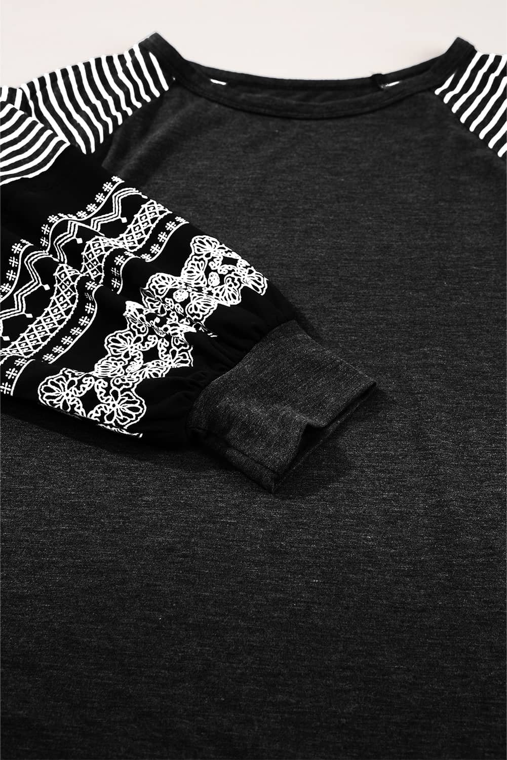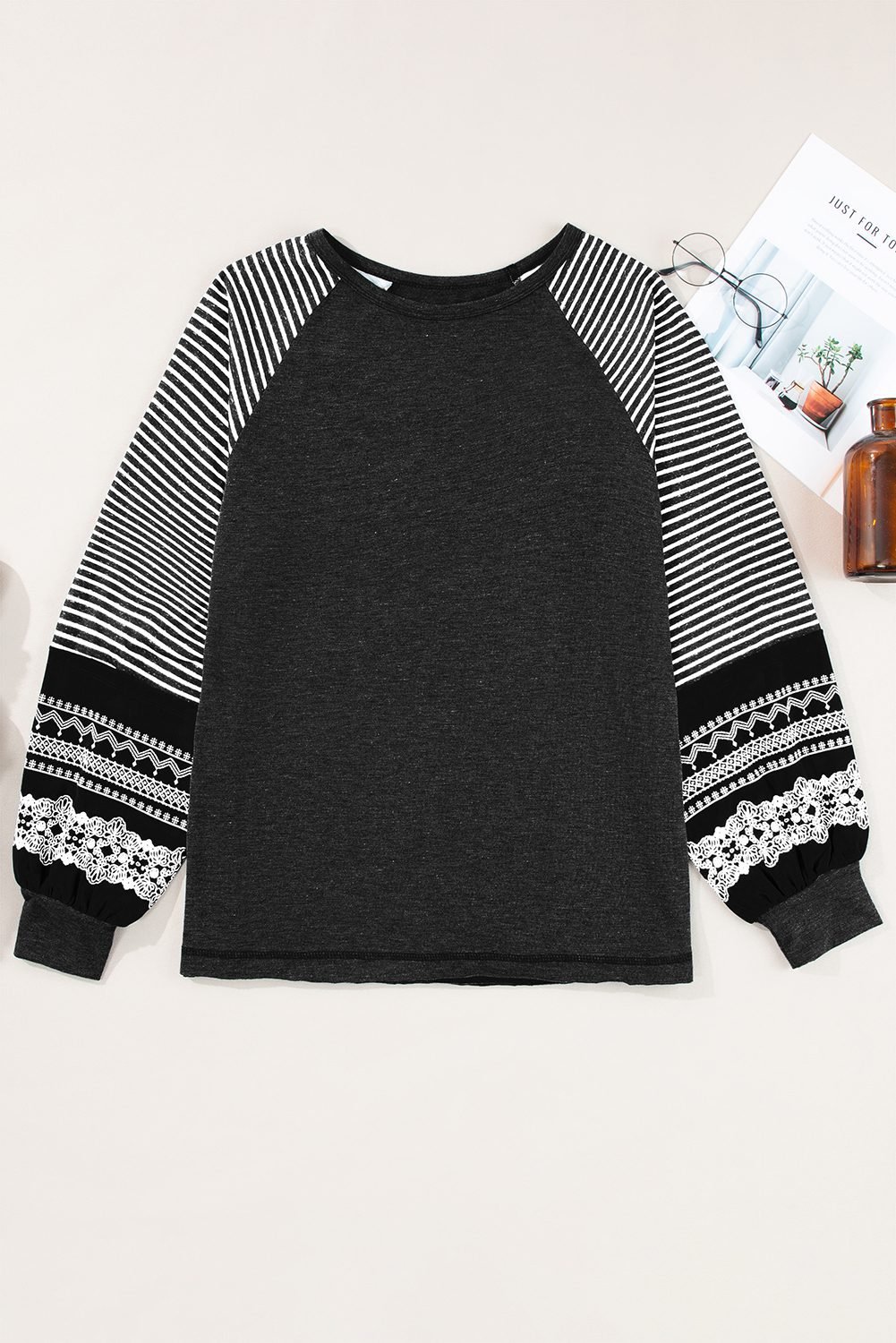 - Trendy mix of contrasting prints and bold stripes.