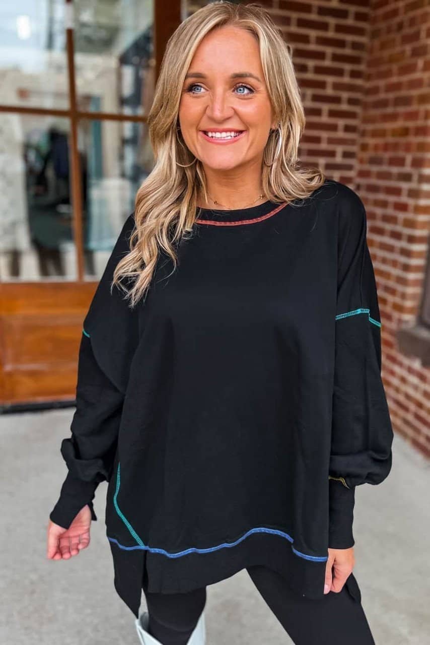 - This drop shoulder sweatshirt adds a relaxed and laid-back vibe