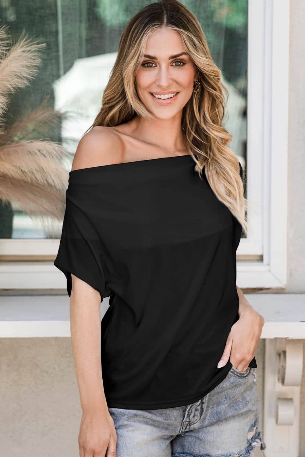 Be the first to review “Black Cowl Neck Bat Sleeve T Shirt”