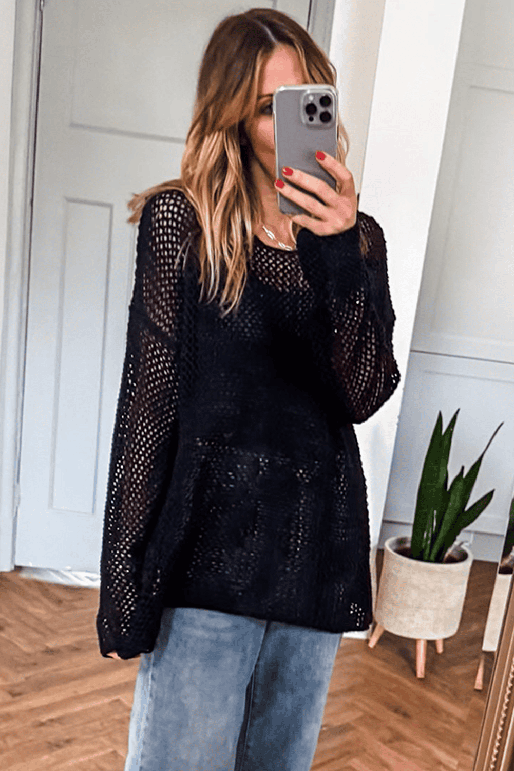 Enjoy a sheer edge visual look and loose comfort with this crochet design.