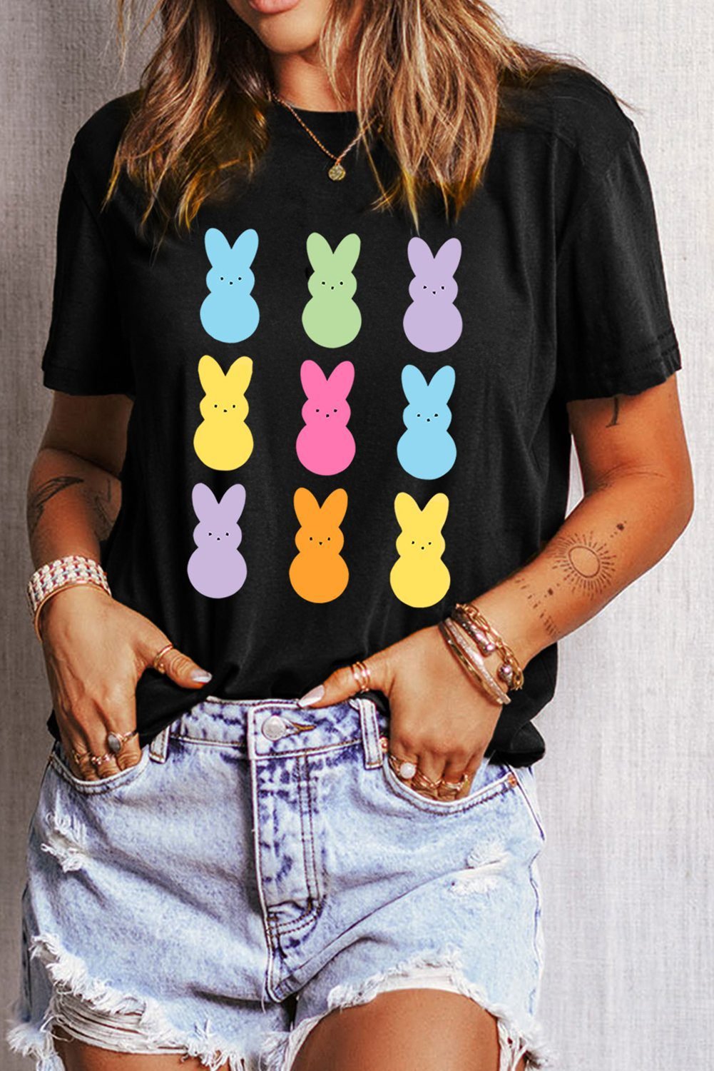 - Colorful Easter-ready rabbit prints bring a playful touch.
