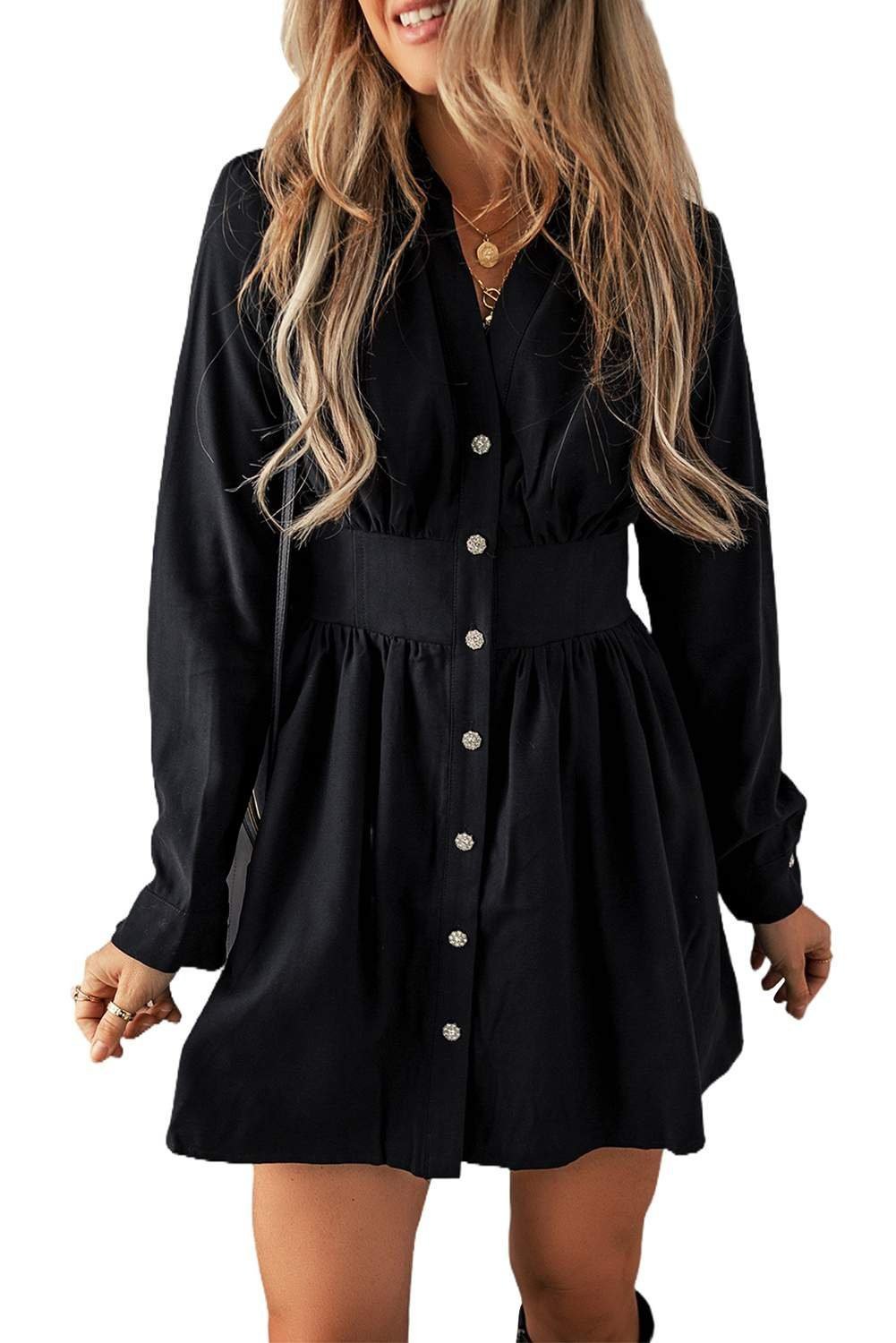 A mini dress with the classic appeal of a button-up shirt, perfect for a polished look.
