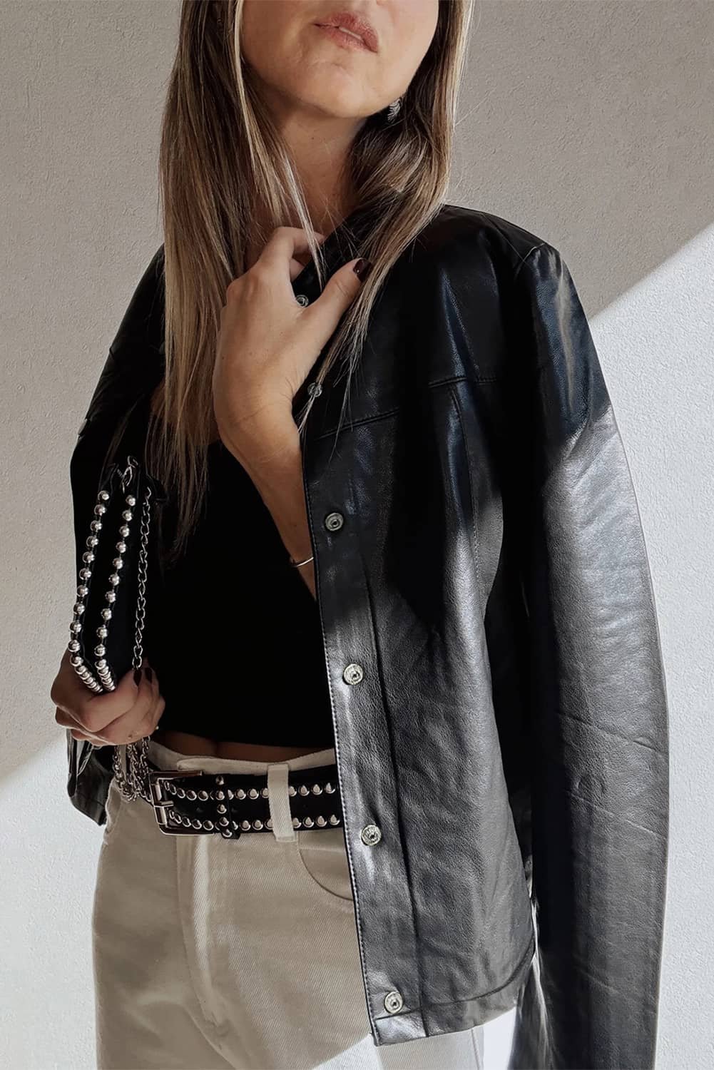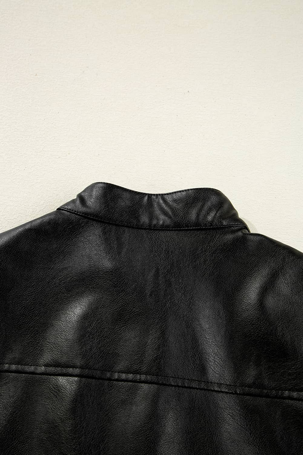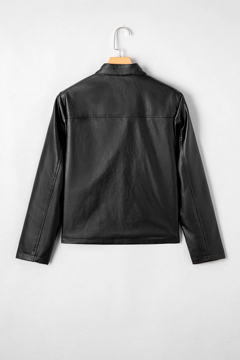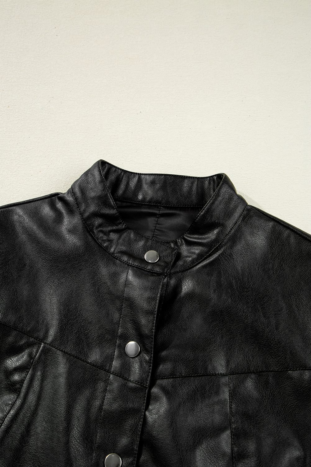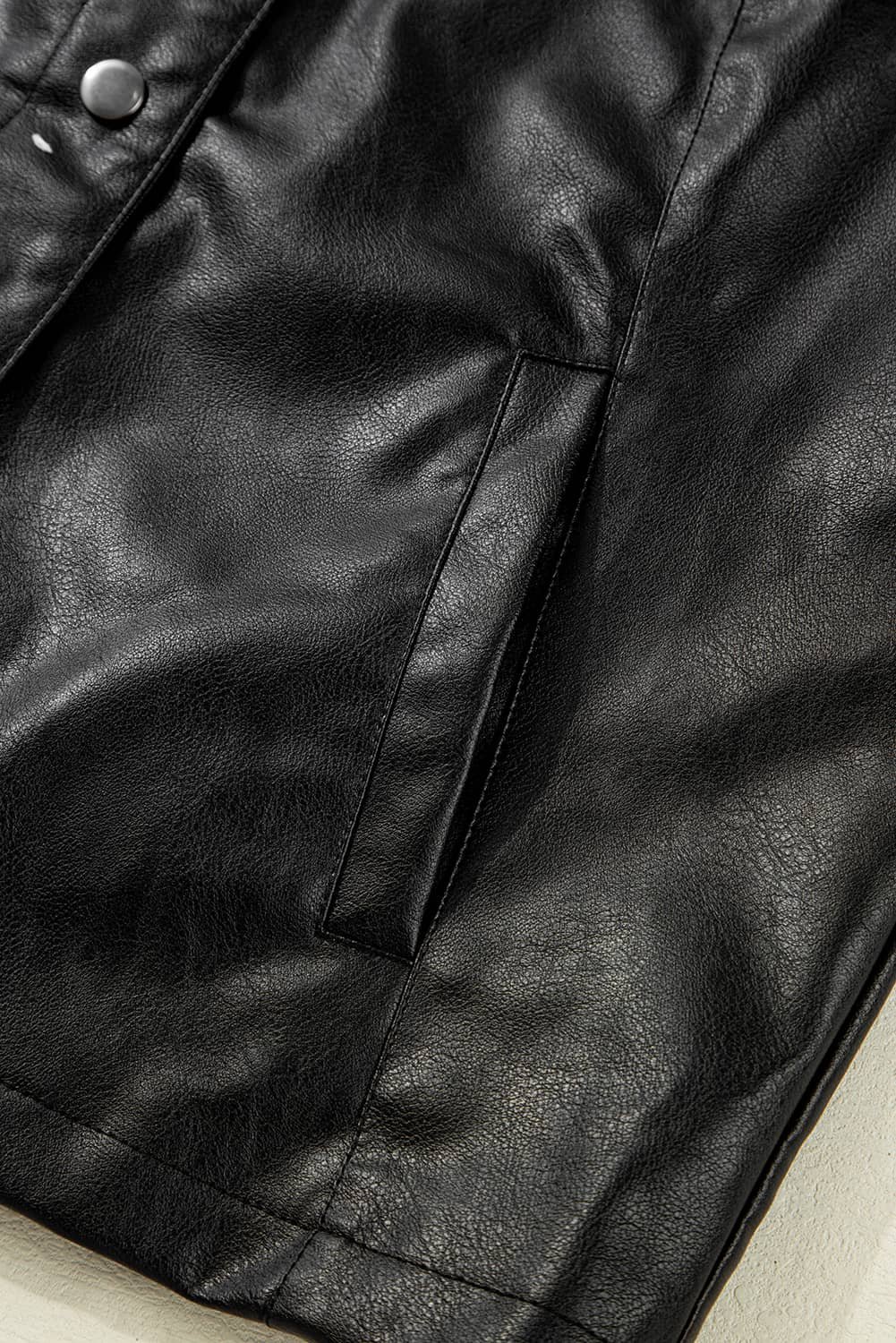 Faux leather jacket with buttoned front detail.