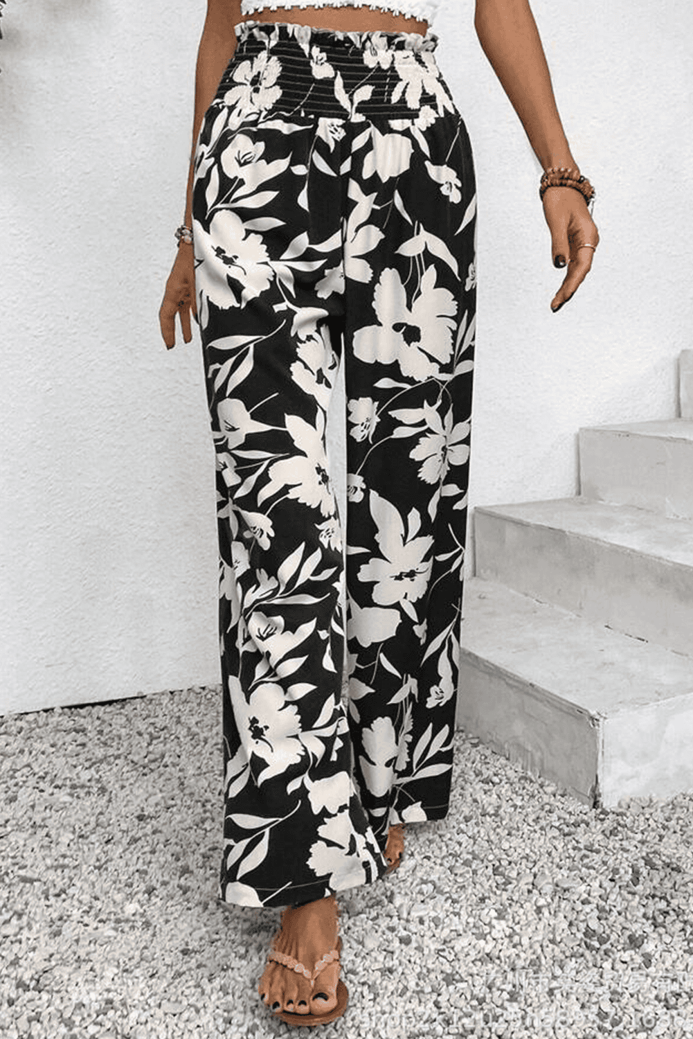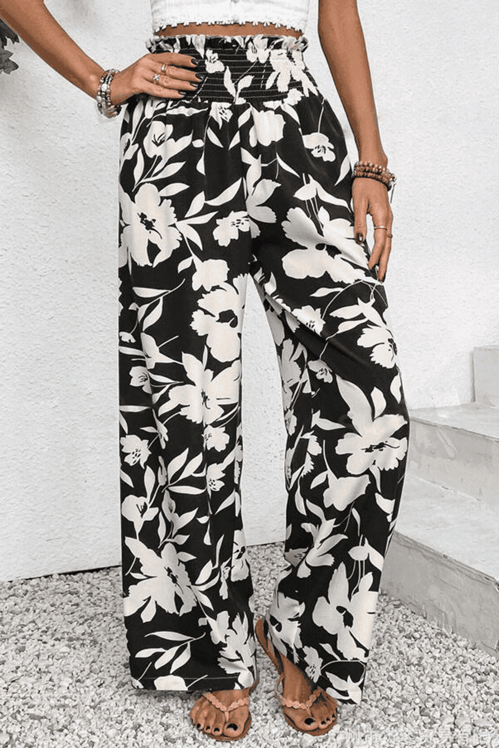 - The floral print pants infuse your look with a free-spirited and artistic flair.