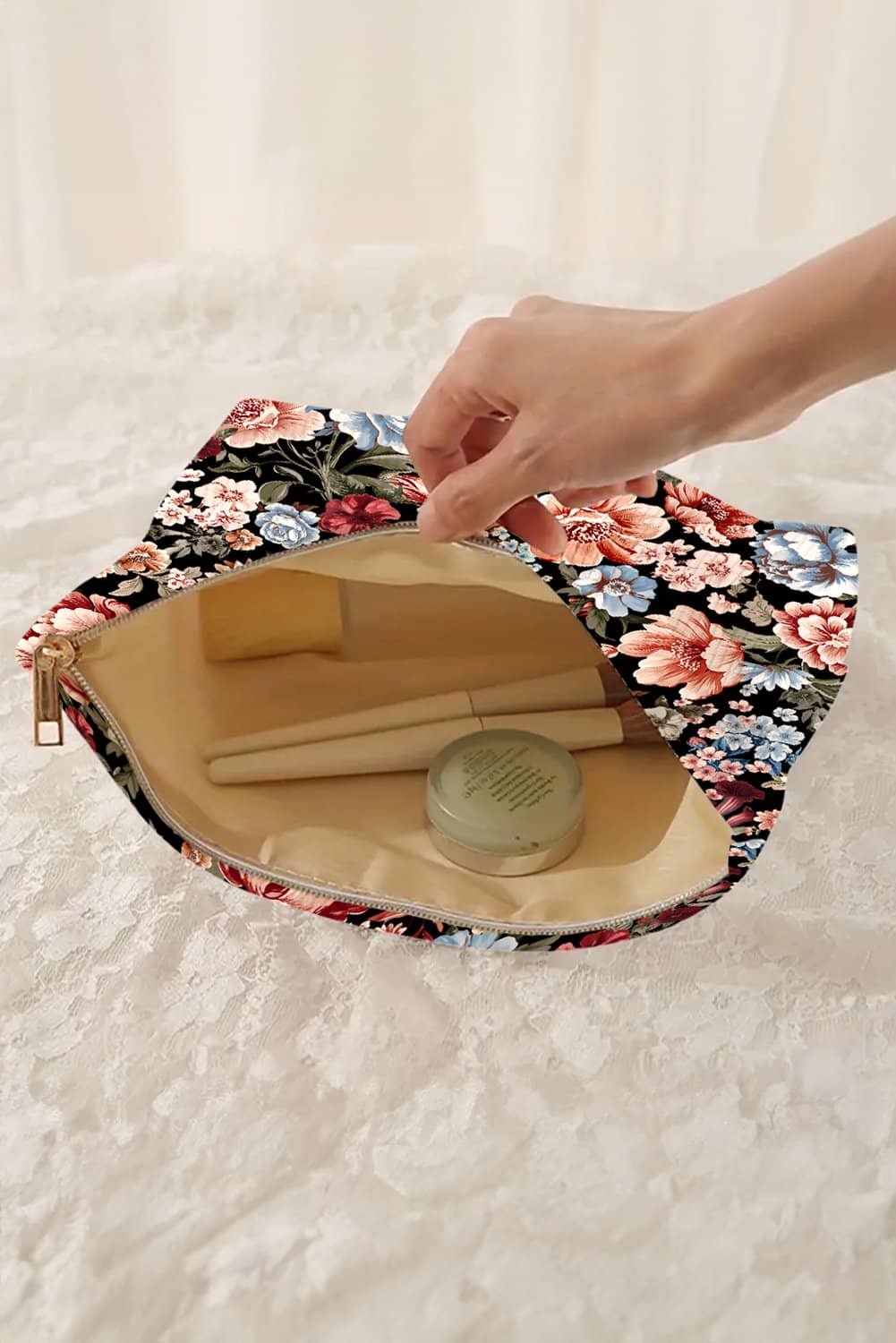 • Convenient zipper closure for easy access to your makeup.