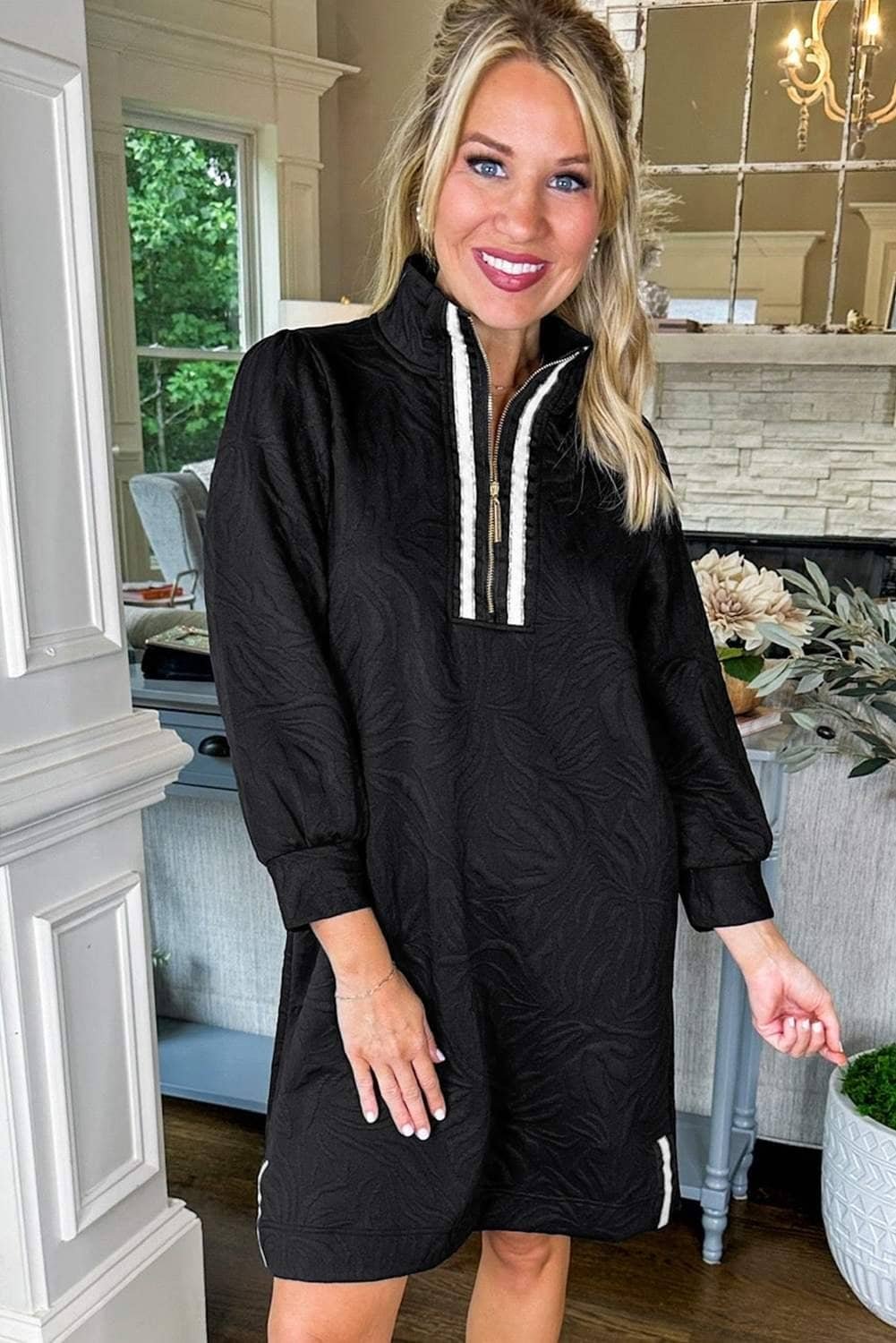 - Jacquard texture provides a unique and elegant feel to this mini dress.