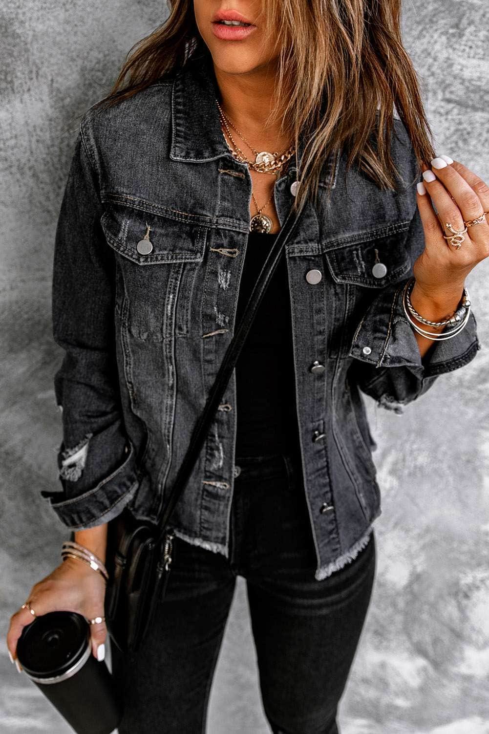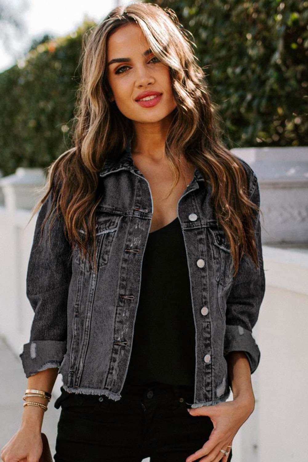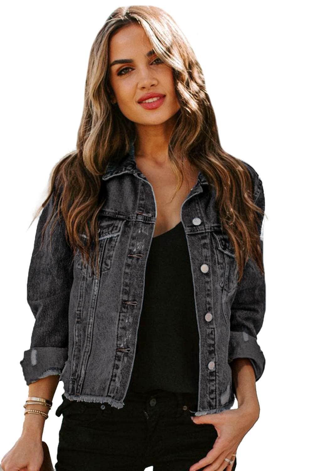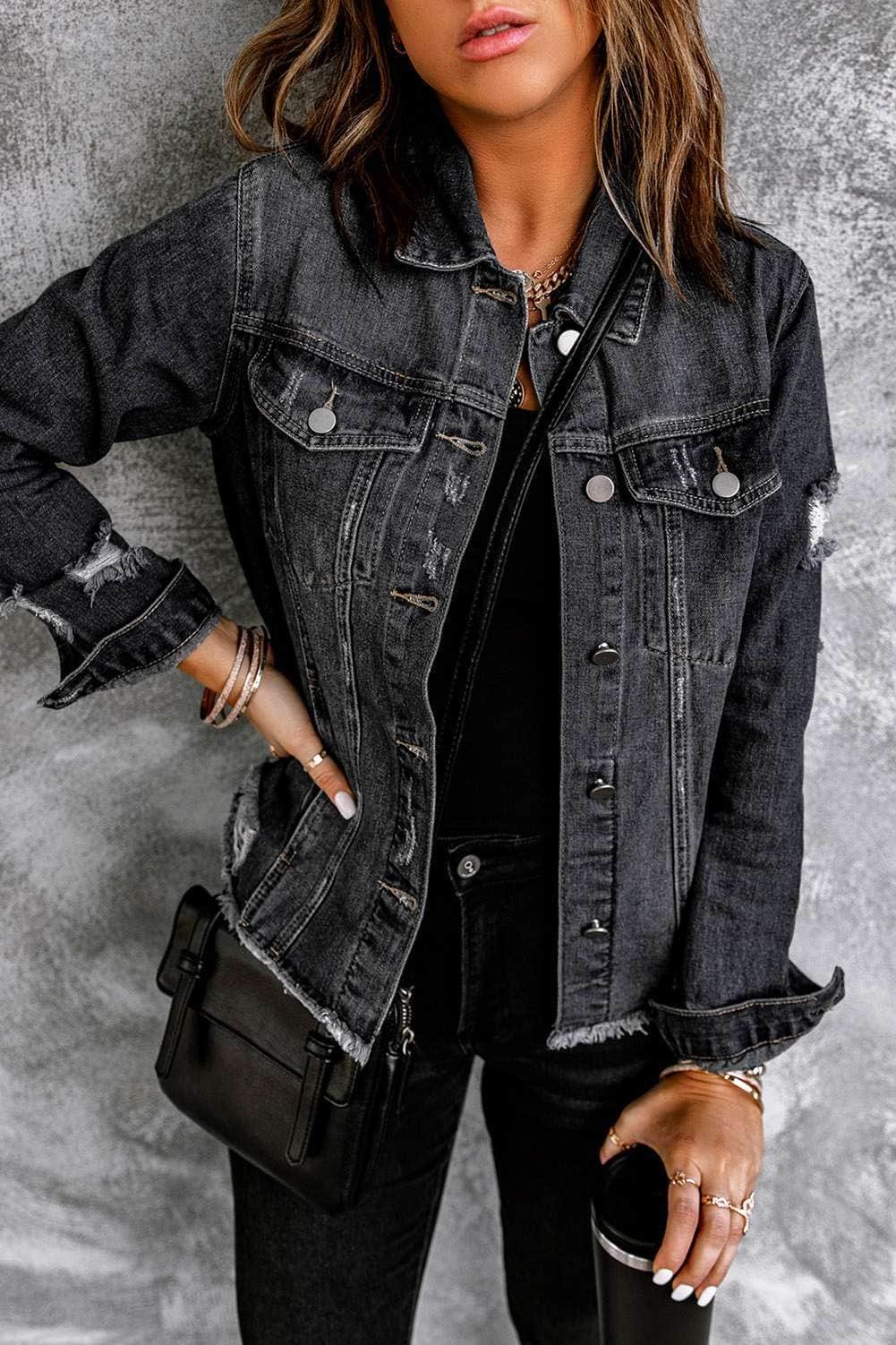 Denim jacket with distressed and raw hem design to highlight your chic style